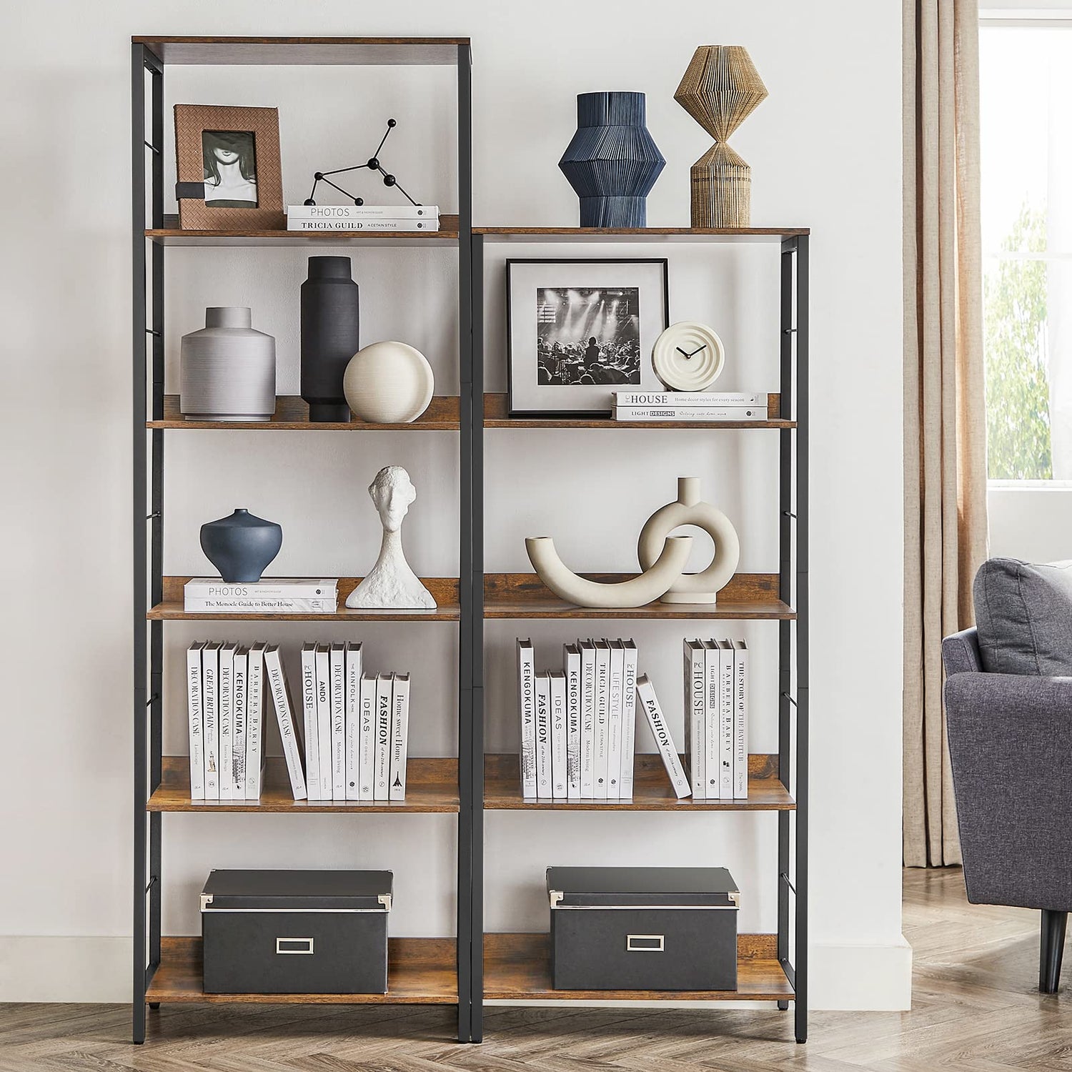 VASAGLE Industrial 6-Tier Bookshelf with Protective Back Panels - Rustic Brown & Black Decor Storage Unit