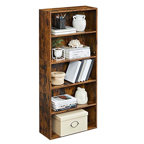 VASAGLE 5-Tier Adjustable Bookshelf in Rustic Brown - Stylish Floor Standing Unit