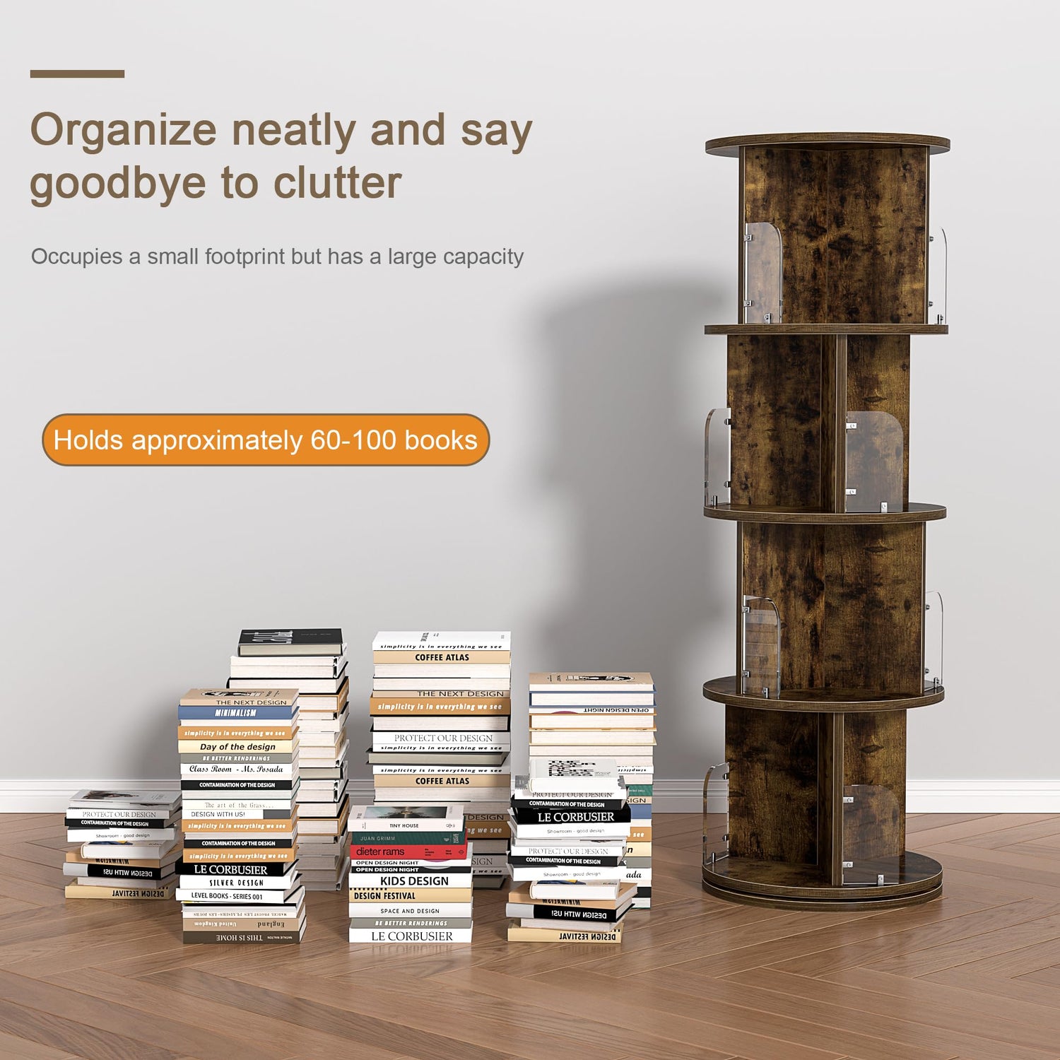 VECELO Rotating Bookshelf Tower, 360°Revolving Bookcase, Round Book Shelf Rotating, Stackable Storage Display Rack Floor Standing, Ideal for Home Office, Brown