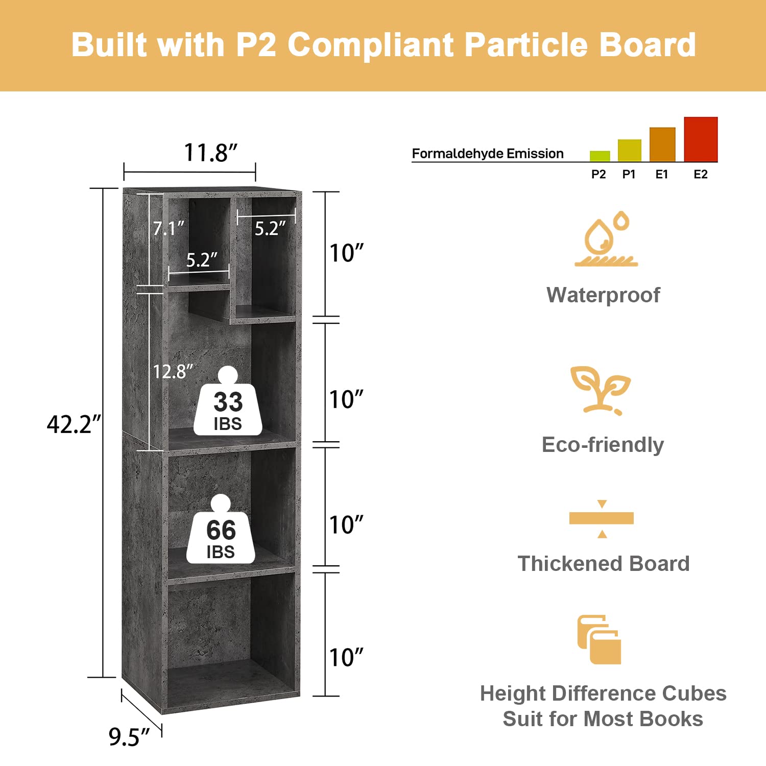 - 🥰[Built to Last, Safe to Enjoy, Easy Clean-Up] Constructed with sturdy 0.3-inch-thick P2 engineering wood panel, formaldehyde emissions ≤ 12mg, anti-tip design, this bookcase stands as a symbol that not only ensures stability, but prioritizes safety. In addition, it's water and scratch resistant, offering resilience to daily wear and tear. Keeping it looking its best is a breeze - a quick wipe with a small dry cloth is all it takes!