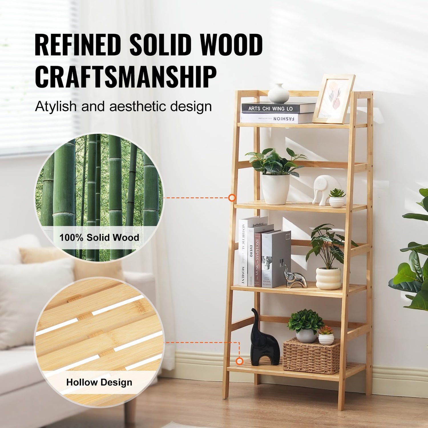 VEVOR 4-Tier Bamboo Ladder Shelf, Trapezoid Open Bookcase, Display Storage Rack Organizer, Freestanding Flower Plant Stand, Ladder Bookshelf Ideal for Bathroom, Bedroom, Office, Study, Natural