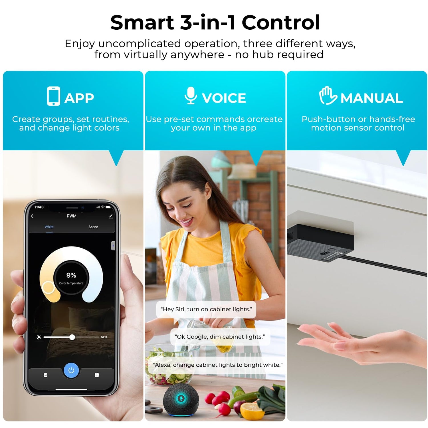 • [Voice Control] ✅ Works with: Amazon Alexa, Google Assistant. ✅ What you can do: Turn lights on/off, tweak brightness, or switch colors with your voice (e.g., “Alexa, change the kitchen lights to Cold White”).