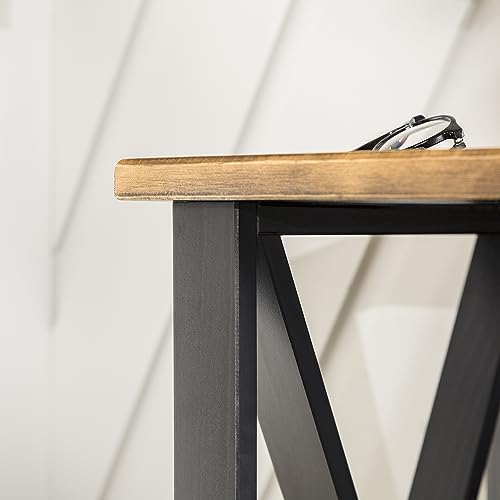 This stunning piece features two fixed shelves that provide ample space for your collection of books, decorative items, or office supplies. The open shelf design adds versatility, making it ideal for displaying trinkets or seasonal decorations. The grooved beadboard back and X-shaped sides evoke a cozy country aesthetic, seamlessly fitting into your home office or serving as a stylish sofa table in your living room.