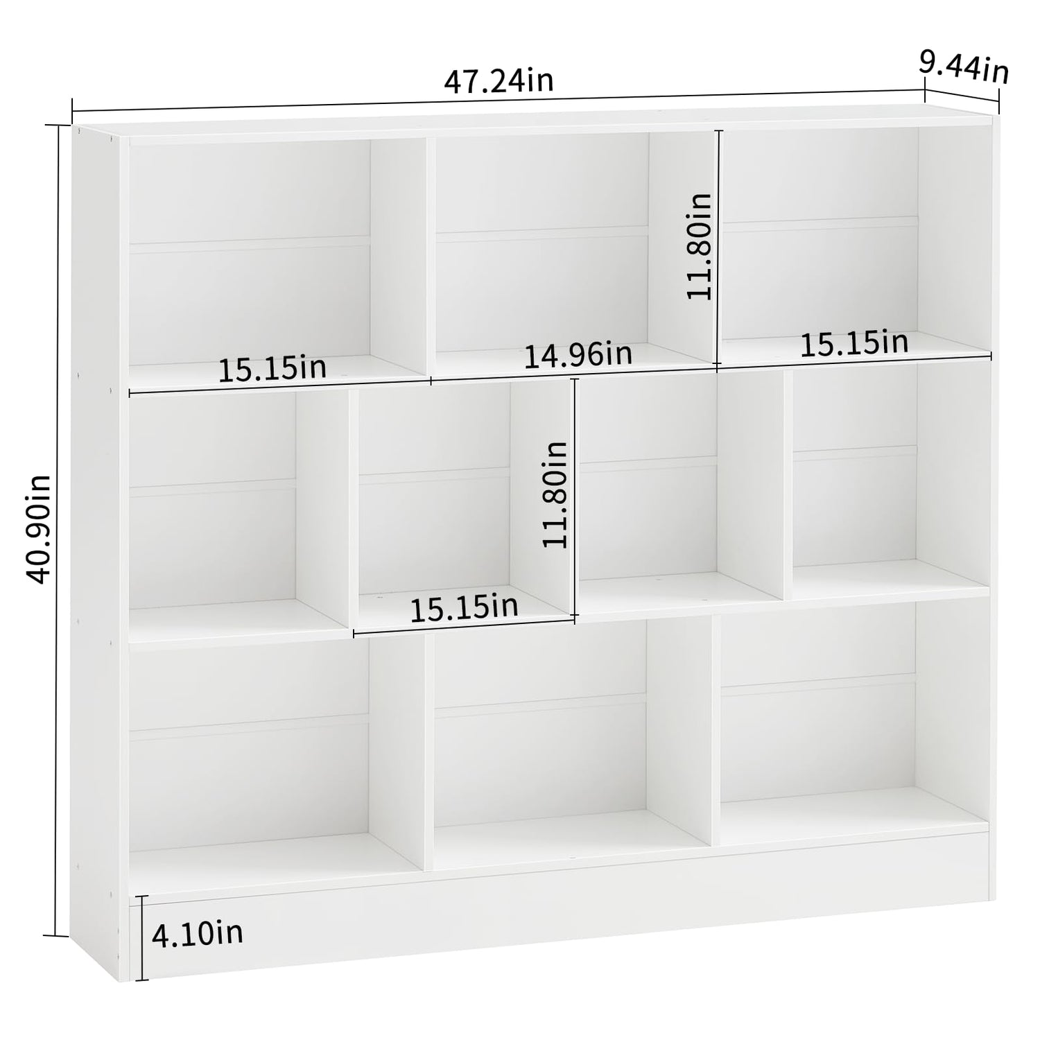 - [Durable & Stable Structure] These wooden book shelves are made of Sturdy and high-quality wood boards, making its longer service life. The elevated base design enhances overall stability, and combined with anti-tilt device, preventing the horizontal book case from shaking during use. In addition, the 4.1-inch base prevents the bookshelf and books inside away from floor dampness and stains. (Product Dimensions: 47.2''L x 9.4''W x 40.9''H)
