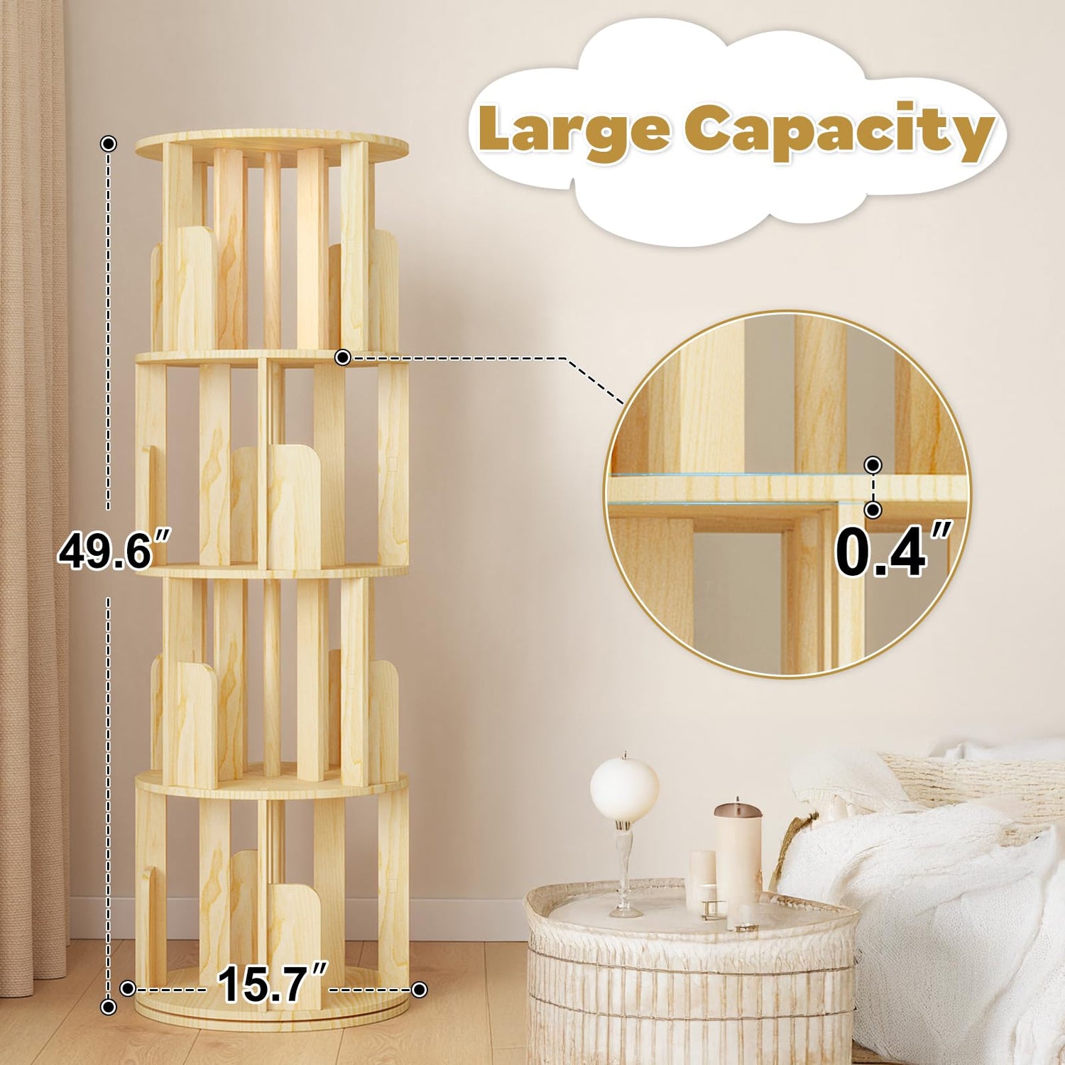 YGYQZ Rotating Bookshelf, 4 Tier Floor Standing Bookcase Wood for Kids & Adult360 Display Narrow Book Shelf Organizer Storage Rack for Bedroom, Living Room, Study Room
