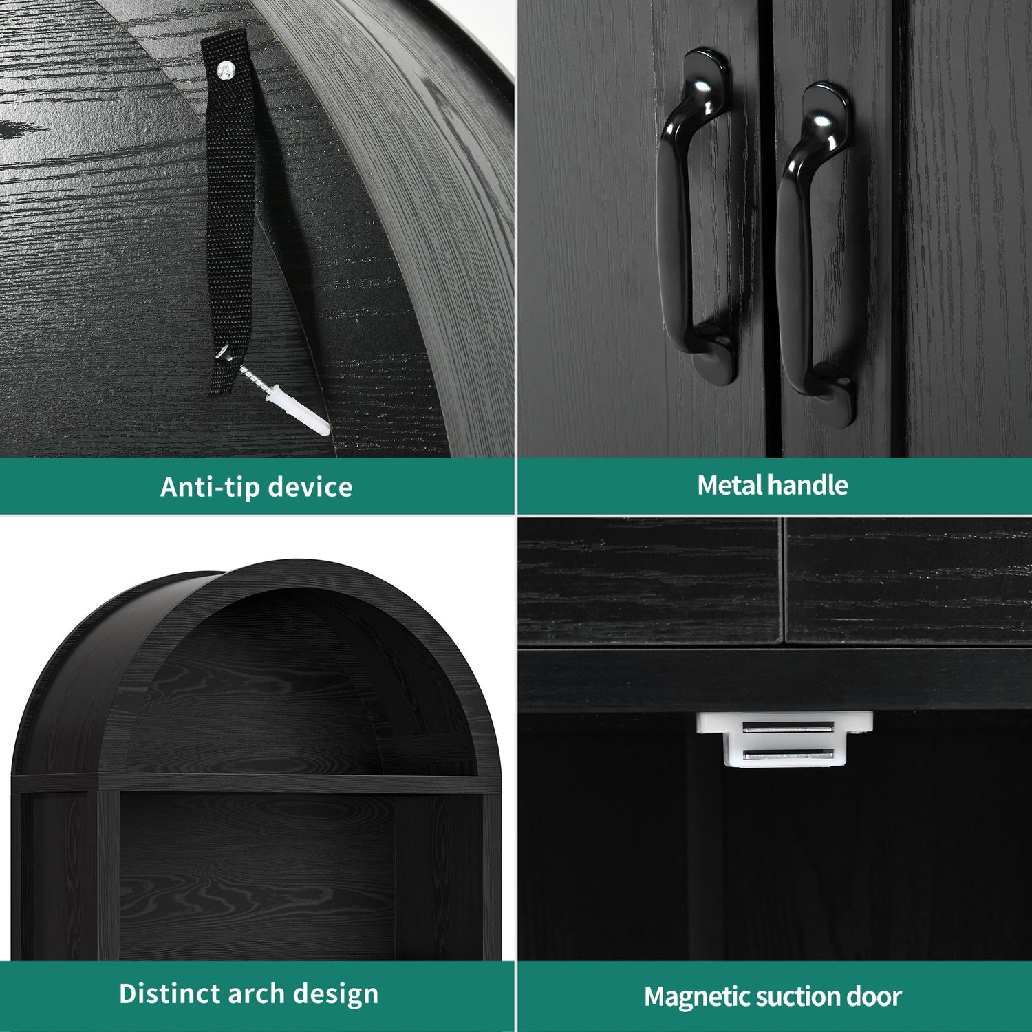 • Multi-Purpose Furniture: Enhance your home with our adaptable black arched bookshelf. Ideal for use as a bookshelf, kitchen cabinet, and more, it fits beautifully in any room, from dining areas to living spaces, while saving valuable space