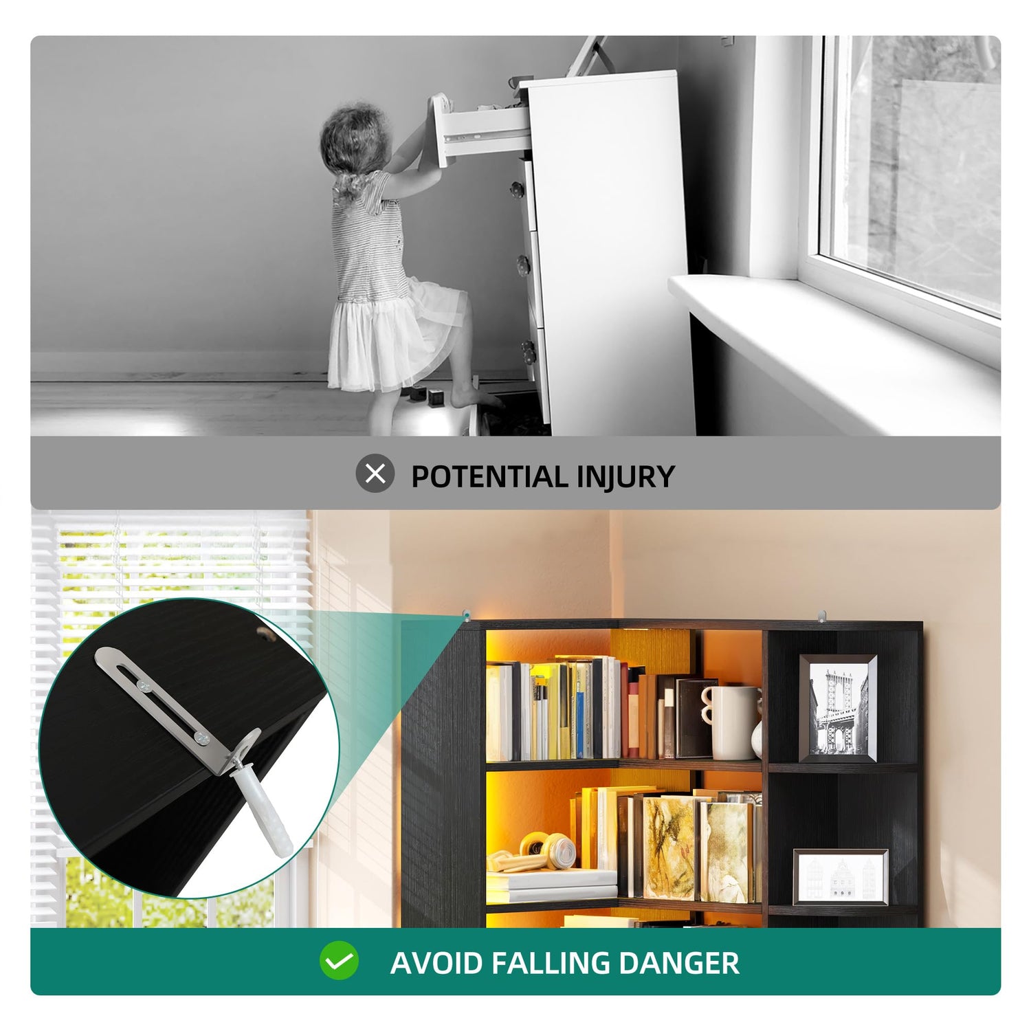 • Simple Installation: This L-shaped bookcase comes with clear instructions and an accessory kit, making assembly straightforward and effortless. Spend less time setting up and more time enjoying your beautifully organized space
