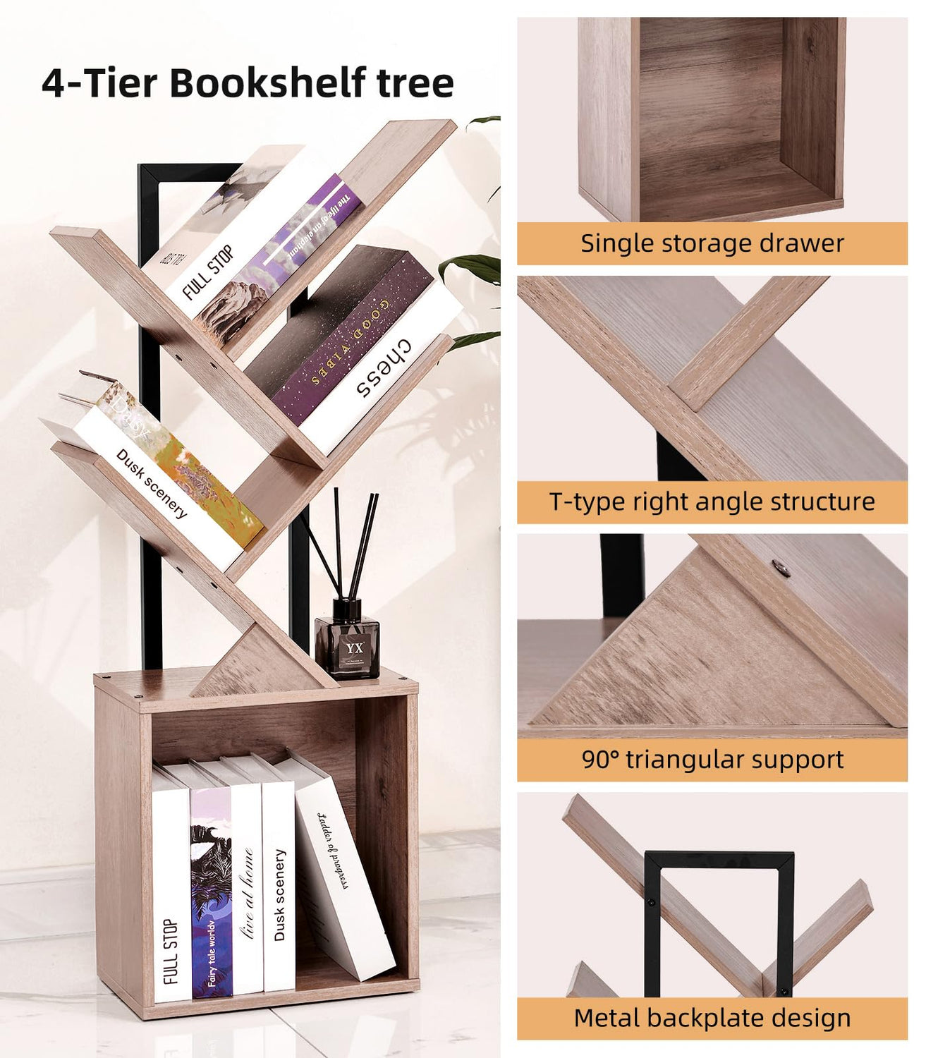 - Unique Tree Design: With its tree-like appearance and triangular base, this small book shelf combines functionality and aesthetics. It adds a touch of visual interest to your home while maximizing storage spaces.