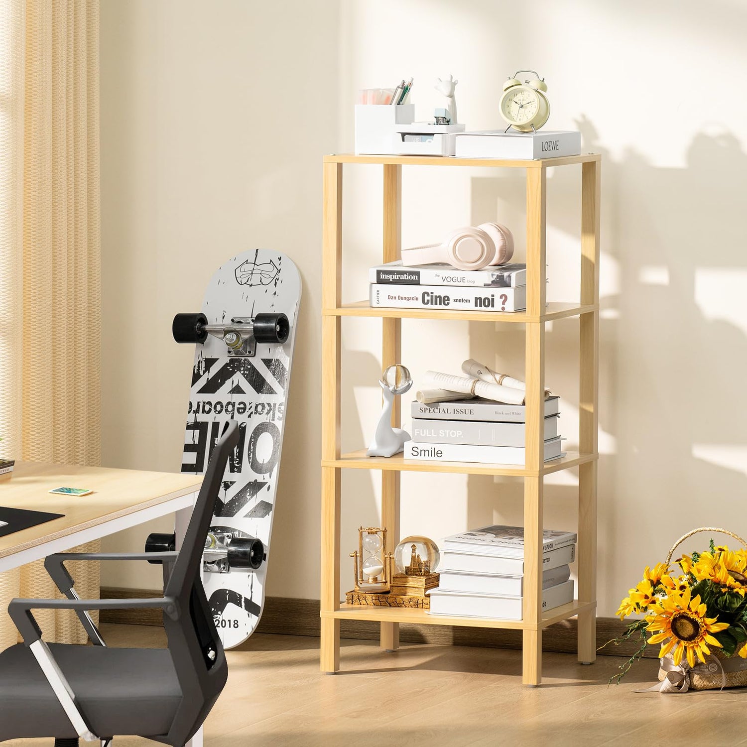 YUFAM 4-Tier Tall Natural Bamboo Bookshelf - Space-Saving Storage for Home and Office