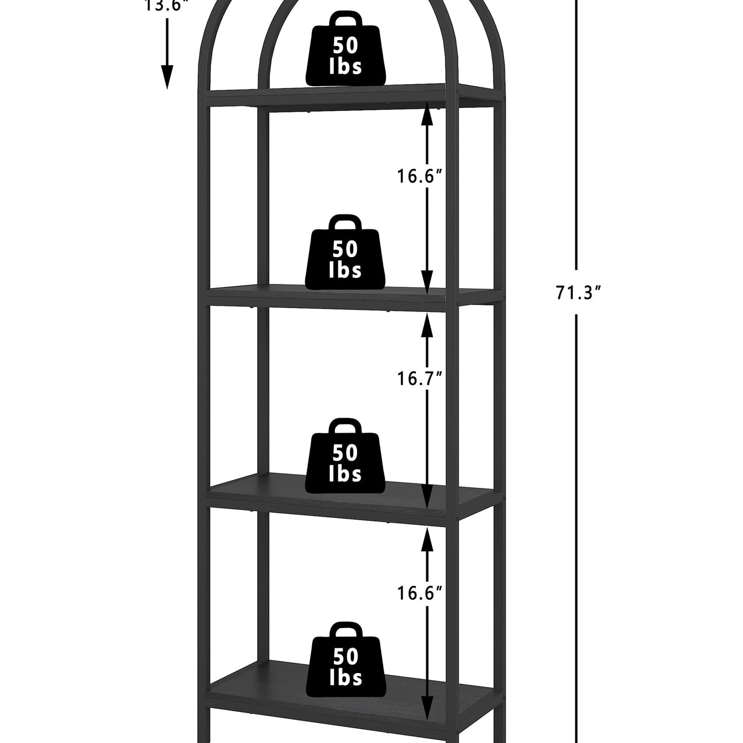 Yusong Bookshelf 4 Tier Arched Bookcase, 71.3" Tall Industrial Open Book Shelves for Living Room, Modern Freestanding Display Shelving Unit Storage Rack with Metal Frame, Office, Bedroom, Black