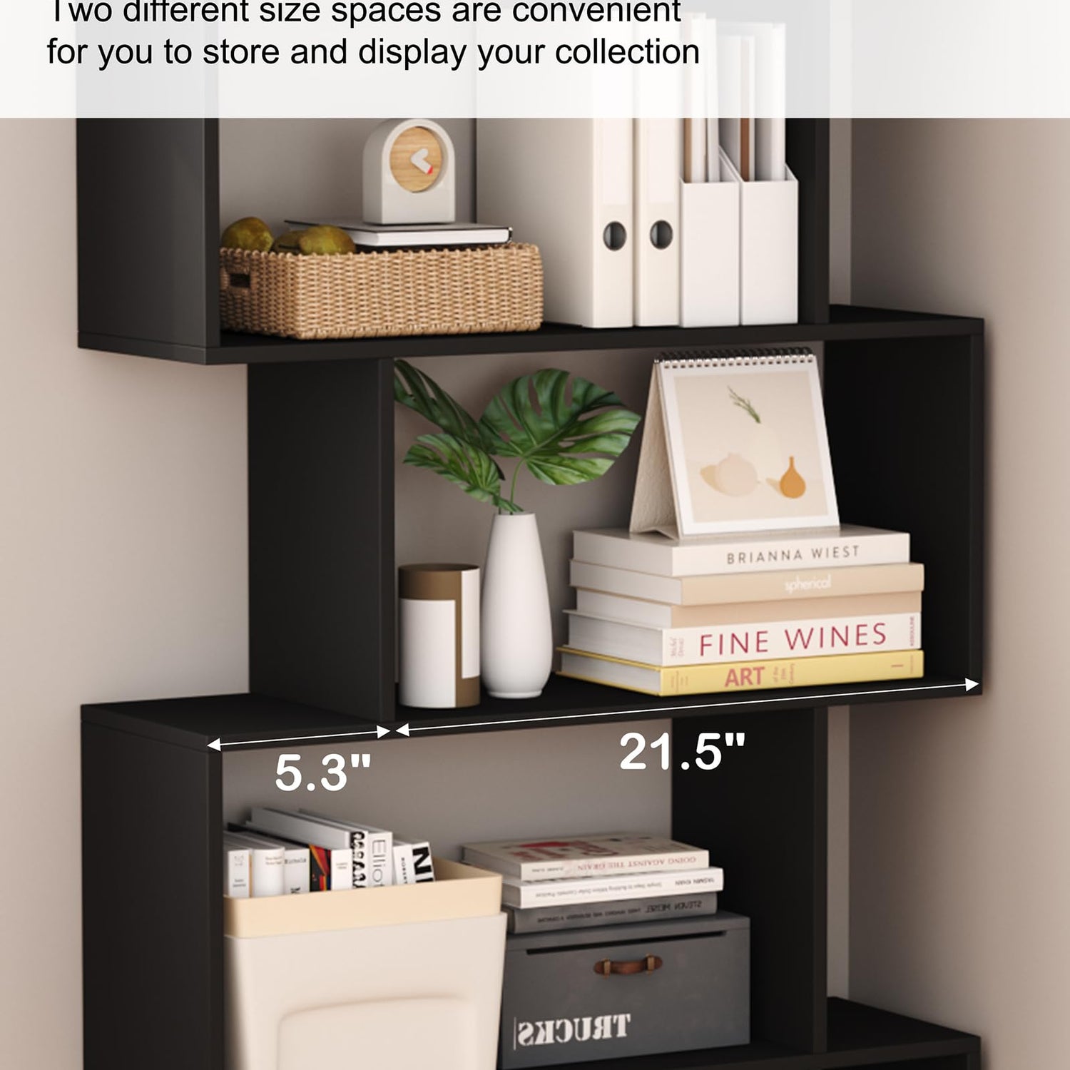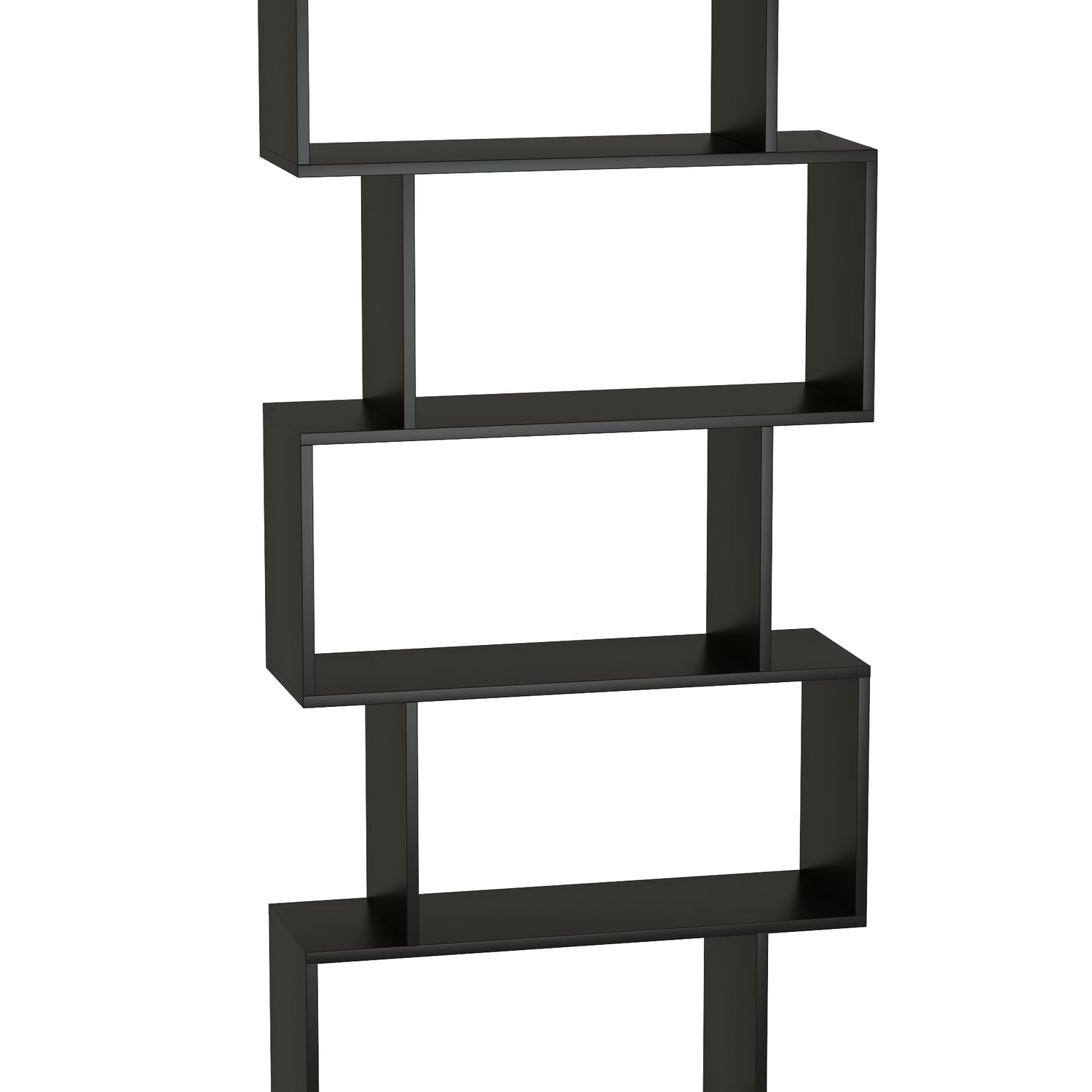 Yusong Bookshelf 5-Tier, Geometric Bookcase S Shaped Book Shelves for Bedroom, Modern Wood Decorative Display Shelf Book Case for Home Office, Black