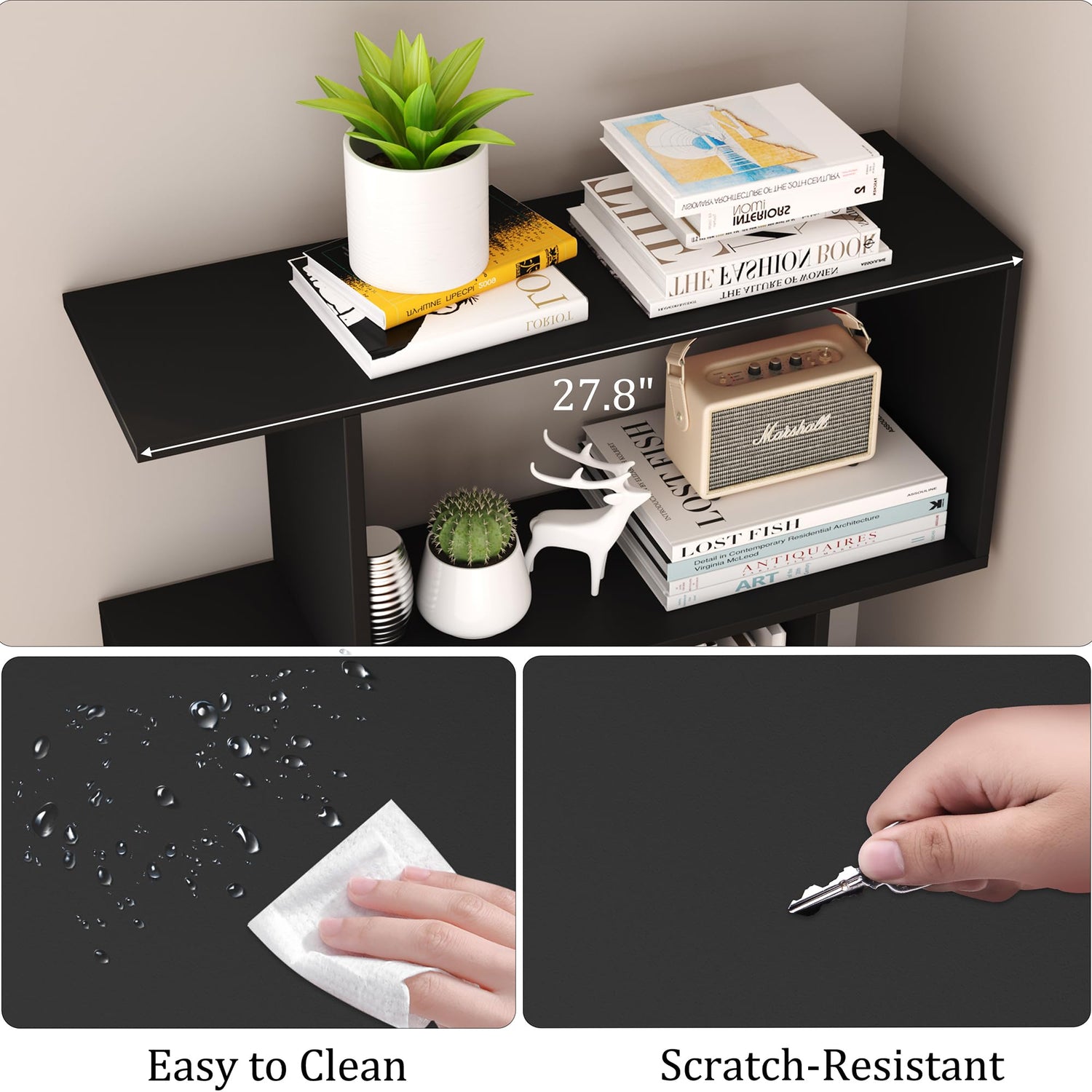 - 【S Bookase Maximized Space】 The storage shelves' size:9.4"D x 27.8"W x 61.8"H, 5-layer partition design, very suitable for your favorite books / small accessories / family photos, etc