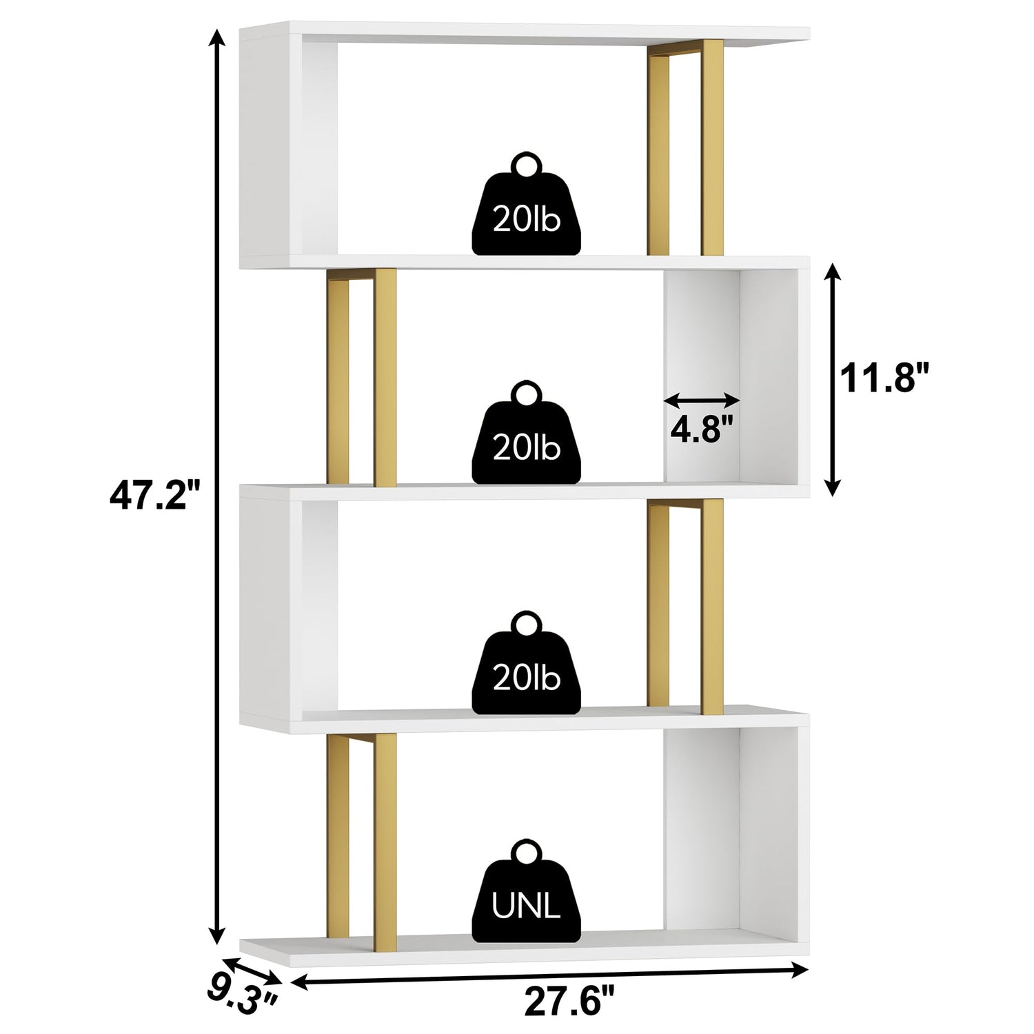 - 【Overall Dimensions】27.6”x 9.3”x 47.2"(L x W x H), providing enough space for displaying.