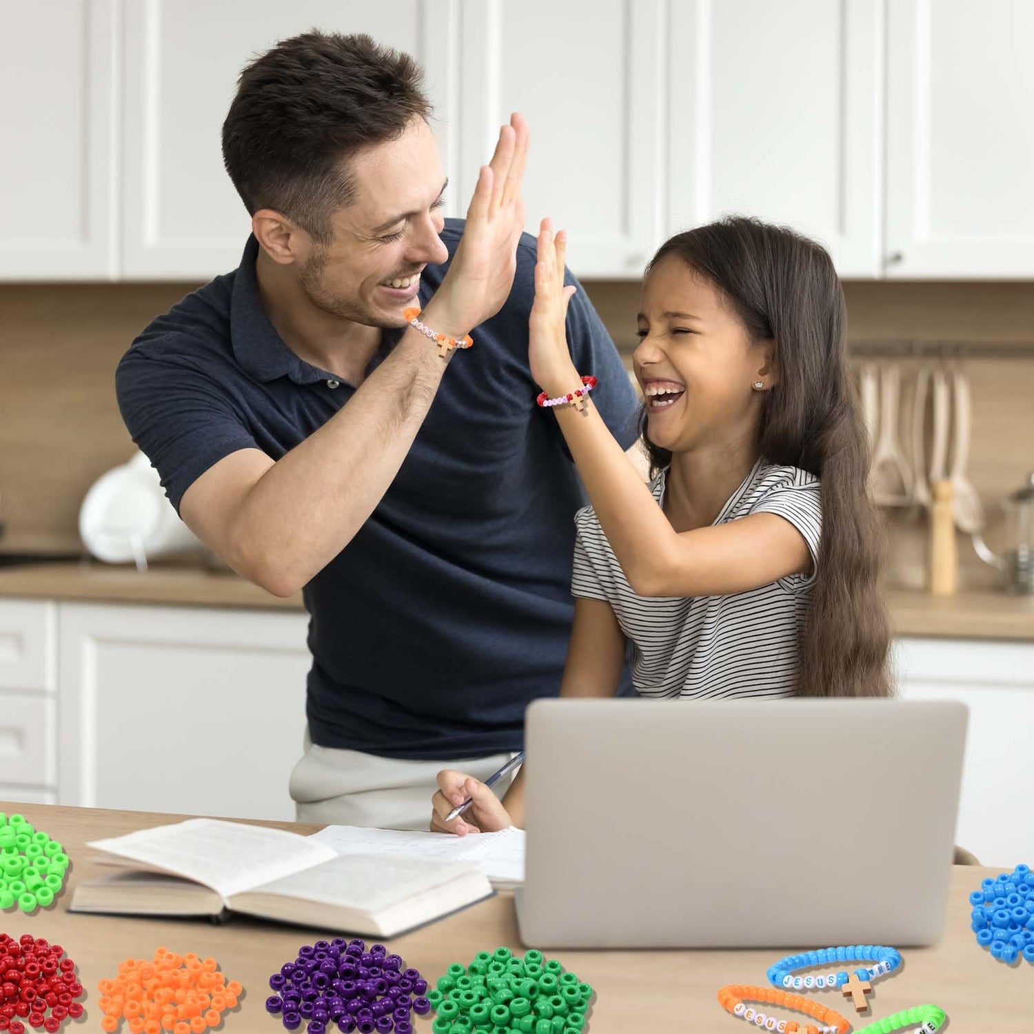 - He Perfect Gift: These "JESUS LOVES ME" handicrafts need to be handmade, crafted step by step from sorting to beading. The DIY bead craft kit are the most meaningful gifts to express blessings. At the same time, the religious beads can also serve as handmade gifts for Sunday school classes, allowing children to give them to their family members or teachers.