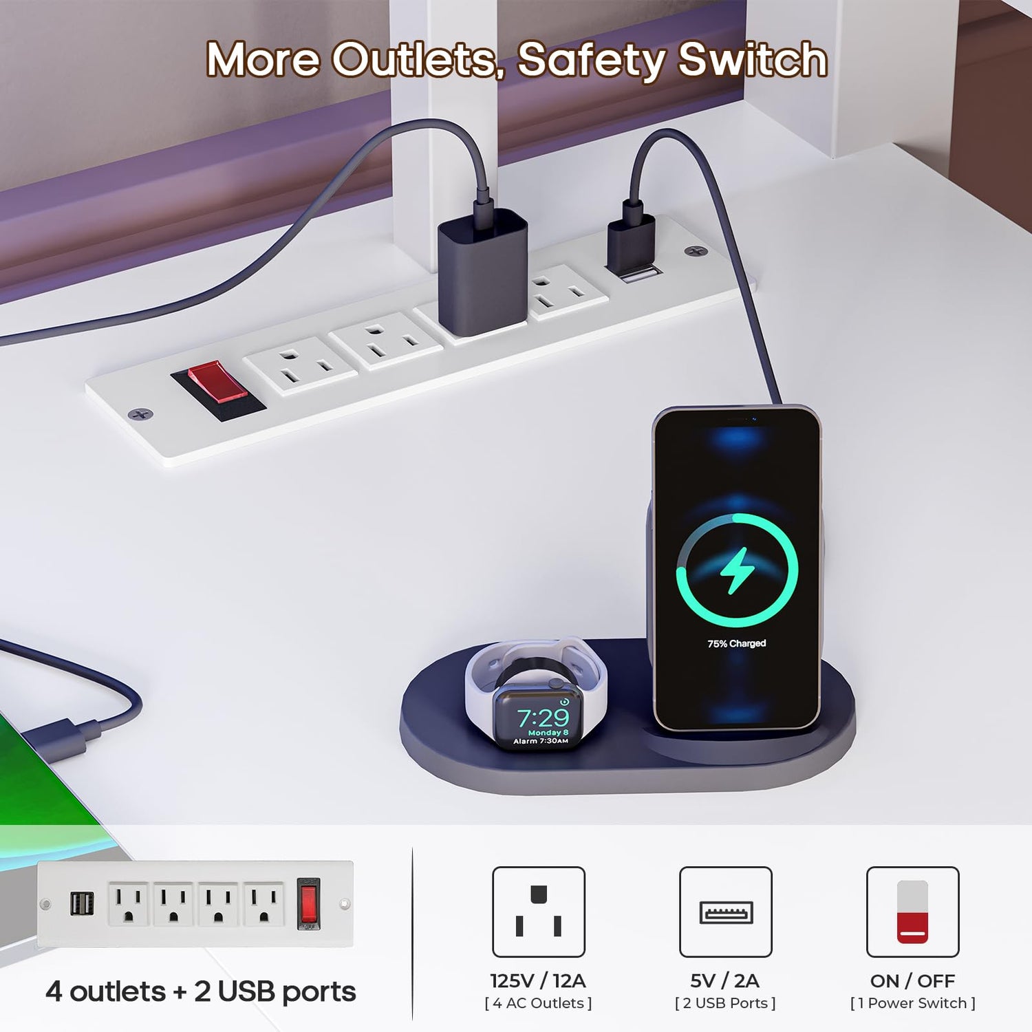 - 【All-in-One Power Hub with Safety Switch】Why it’s better? 4 sockets and 2 USB ports, that's twice the outlets of other loft bed desks—game controllers, laptops, and phone chargers can all live happily together. Ours specially includes an integrated safety switch to prevent electrical hazards