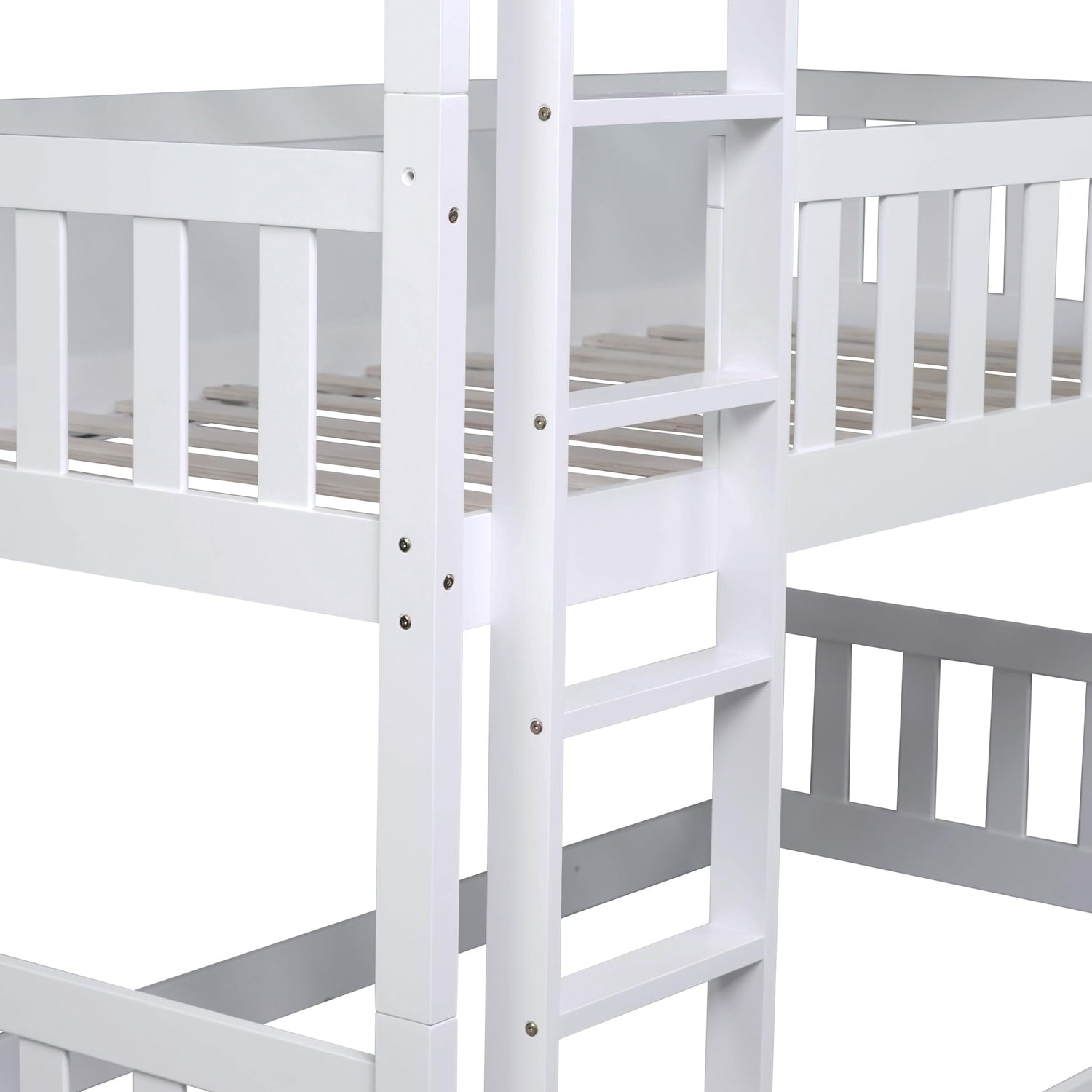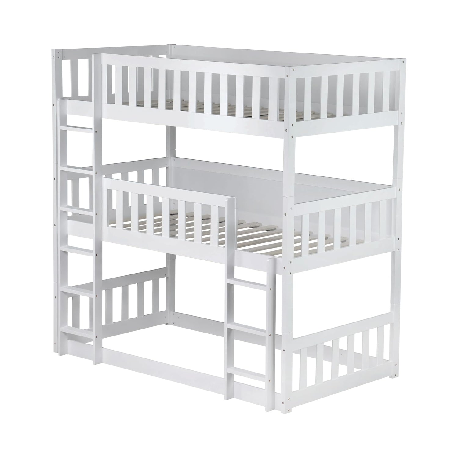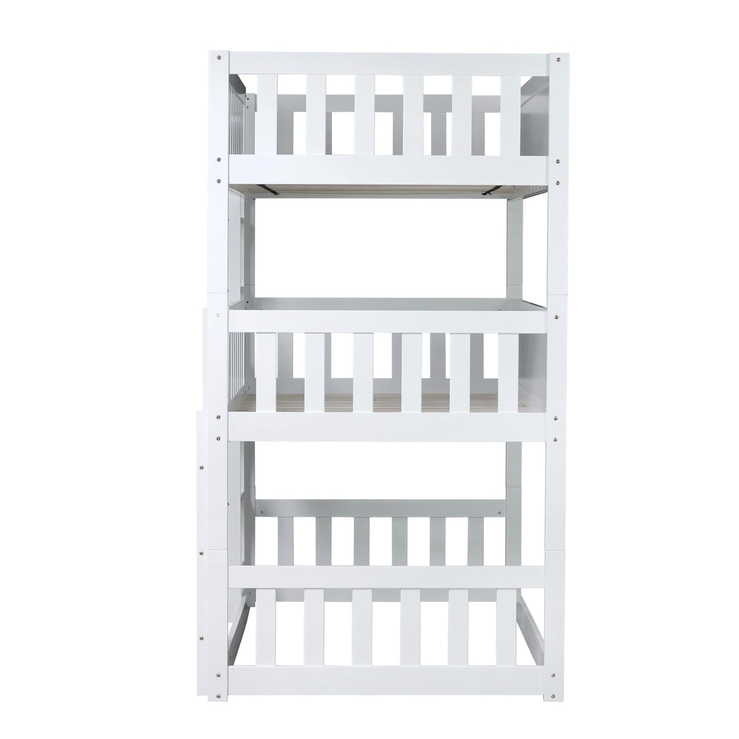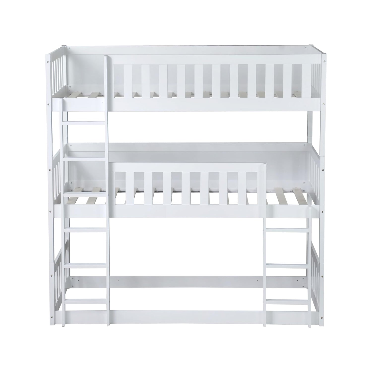 ASKVDL Triple Bunk Bed with Ladders & Guardrails for Kids,Detachable Triple Bunk Beds,Twin Over Twin Over Twin Bunk Bed,Easy Assembly,No Box Spring Needed,White