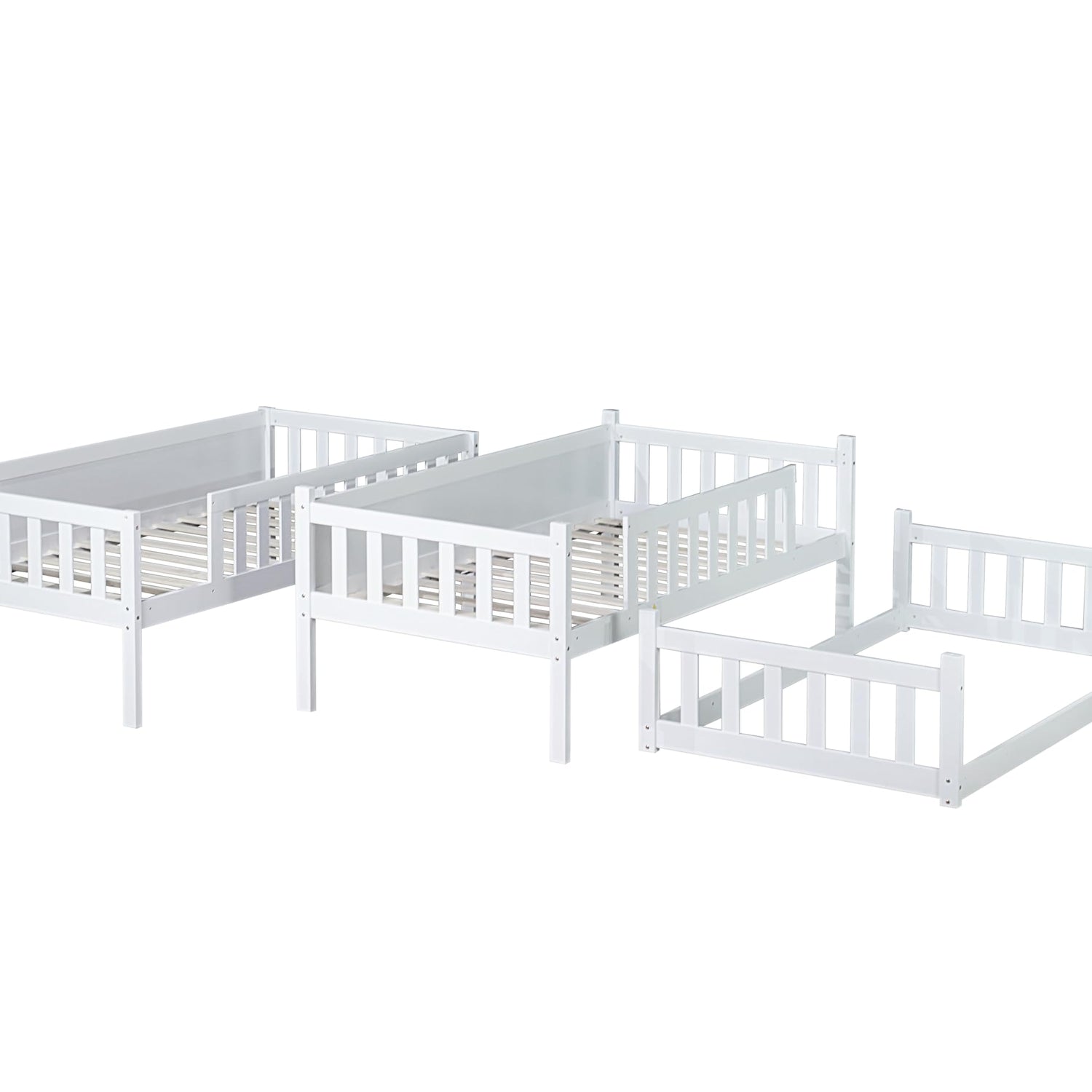 - [Modular Flexibility – Detachable & Reconfigurable]Beyond its space-efficient design, this triple bunk bed adapts seamlessly to evolving needs. Its innovative modular system allows effortless conversion into three standalone twin beds, perfect for households transitioning from shared sleeping arrangements to personalized spaces.
