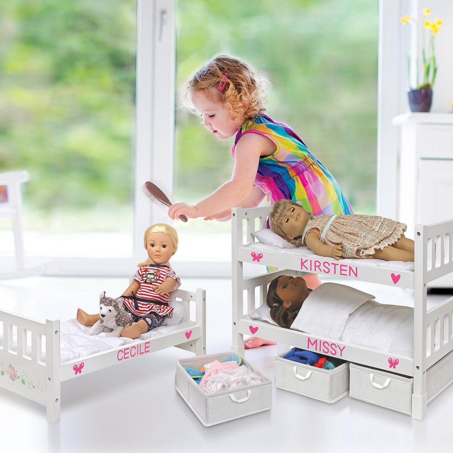 - ACCOMMODATES 20-INCH DOLLS: Specifically designed to fit 20-inch dolls, this bunk bed enhances playtime with larger doll collections.