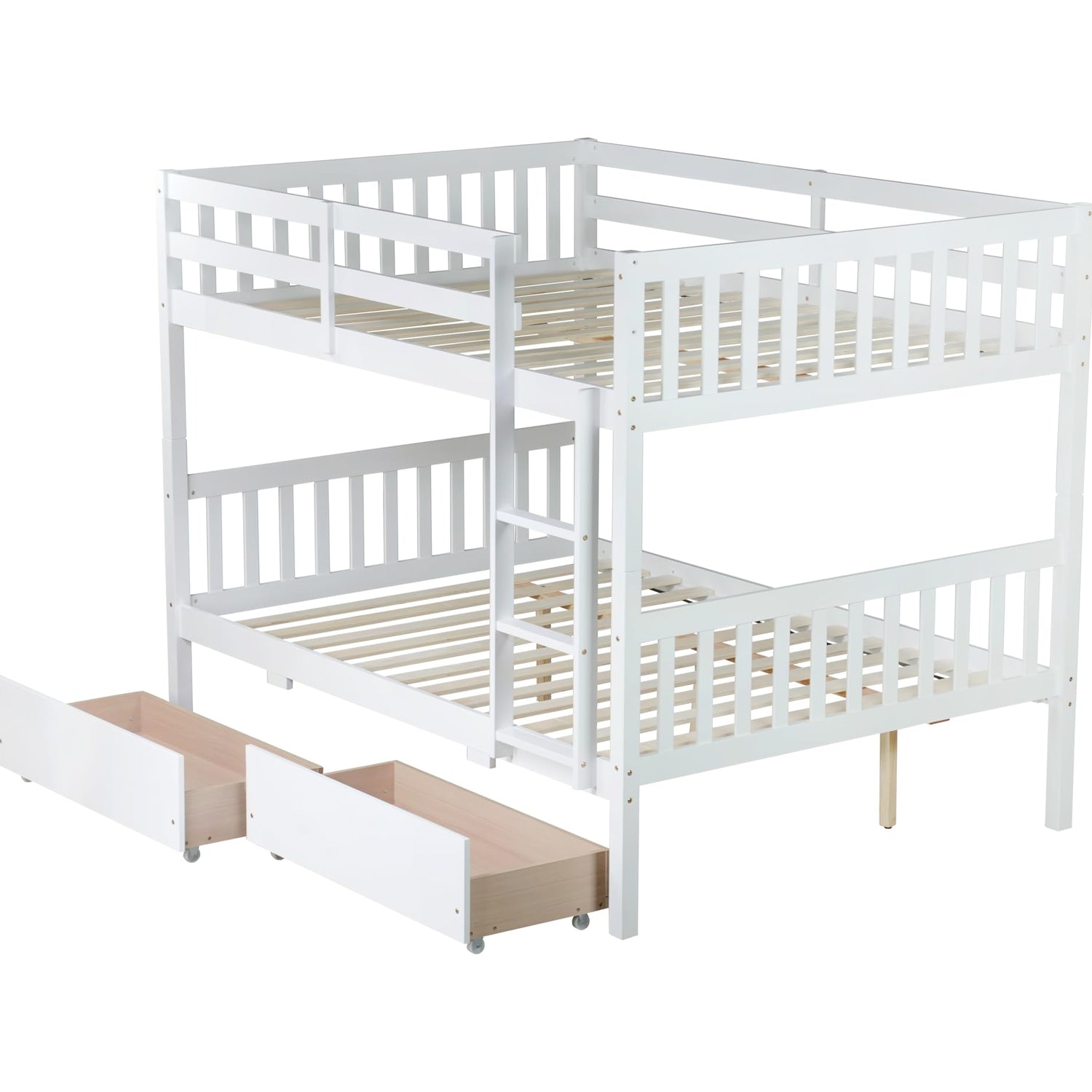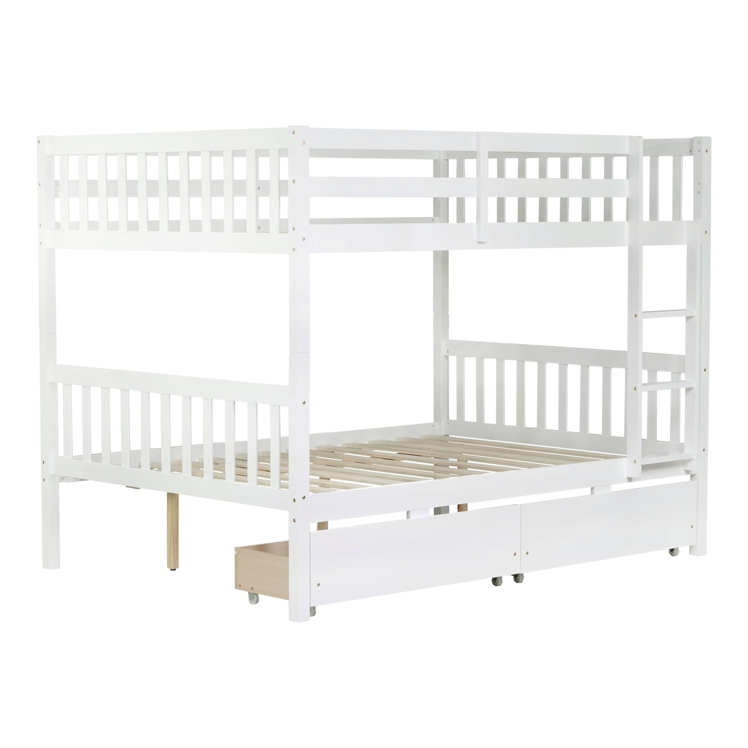 Ball & Cast Full Over Full Wood Bunk Bed for Kids,Convertible Storage Bunk Bed with Two Storage Drawers and Ladder,Can Be Divided Into Two Full Size Daybeds,No Box Spring Required,White