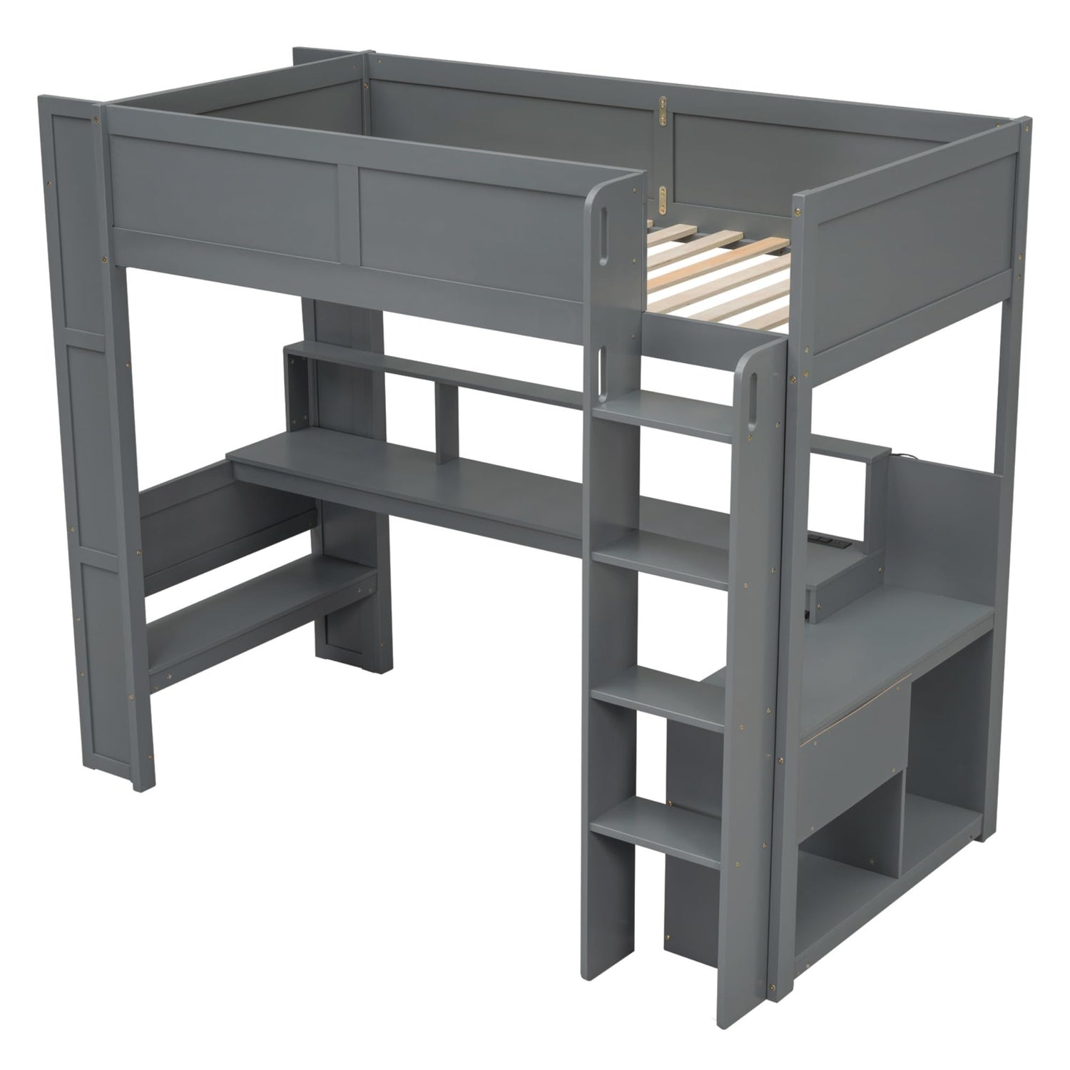 • 【Convenient Charging Station】: The built-in desk includes 2 standard plug outlets and 2 USB ports, allowing you to charge your devices easily. This charging station makes the loft bed not only a place to sleep but also a hub for all your entertainment and study needs.