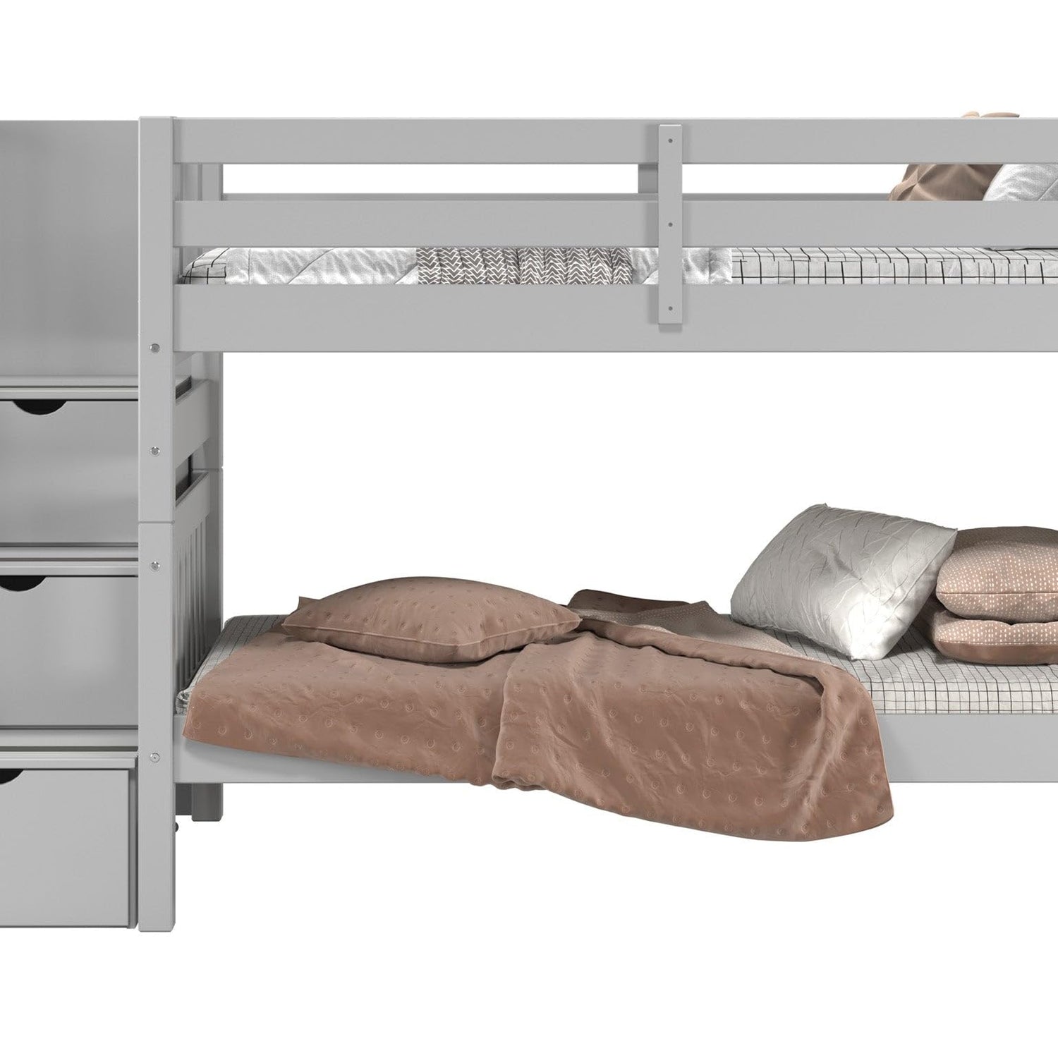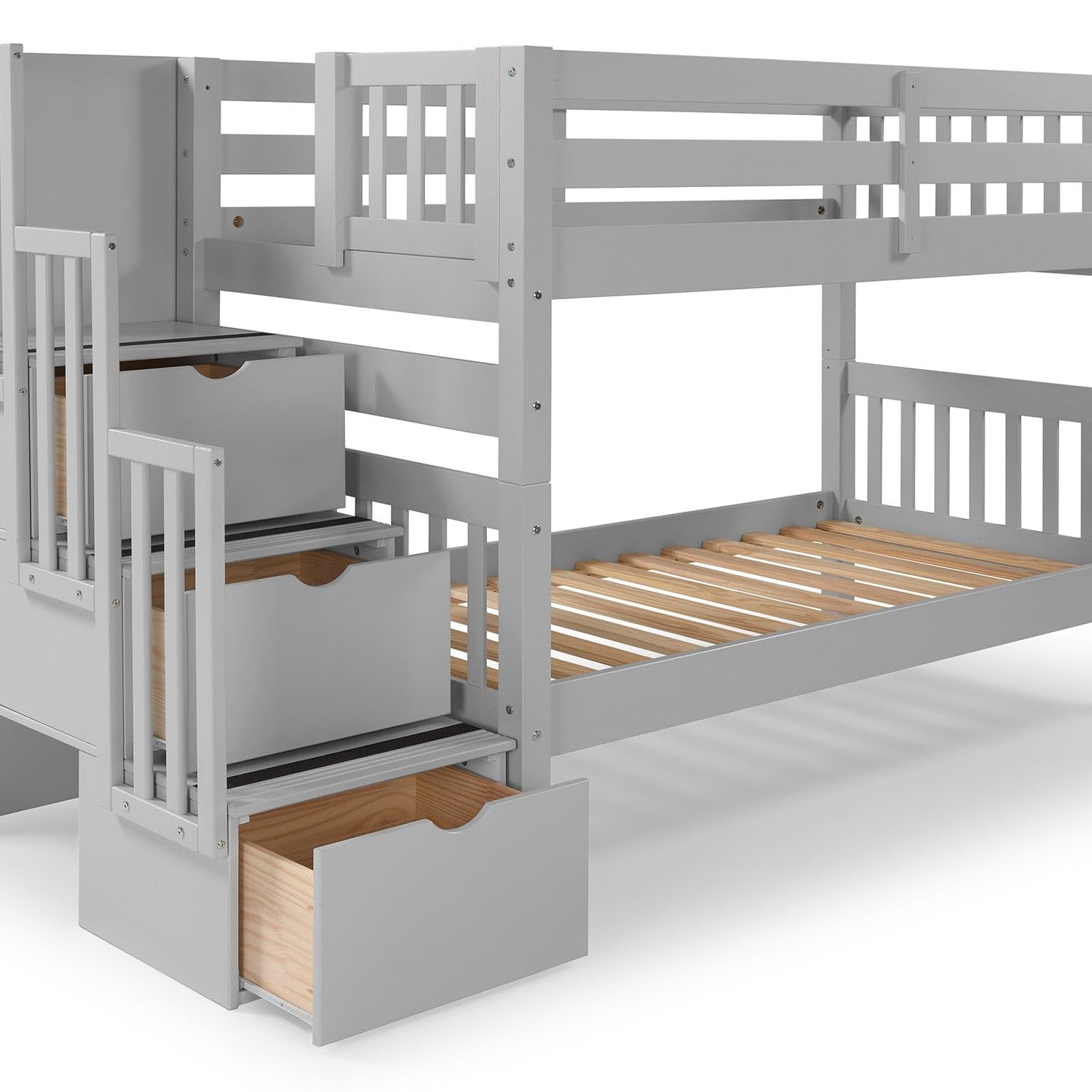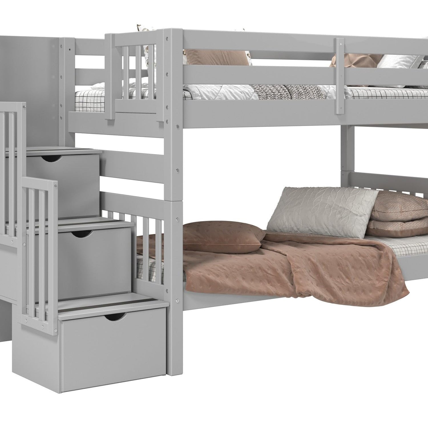 Bedz King Stairway Bunk Beds Twin over Twin with 3 Drawers in the Steps, Gray