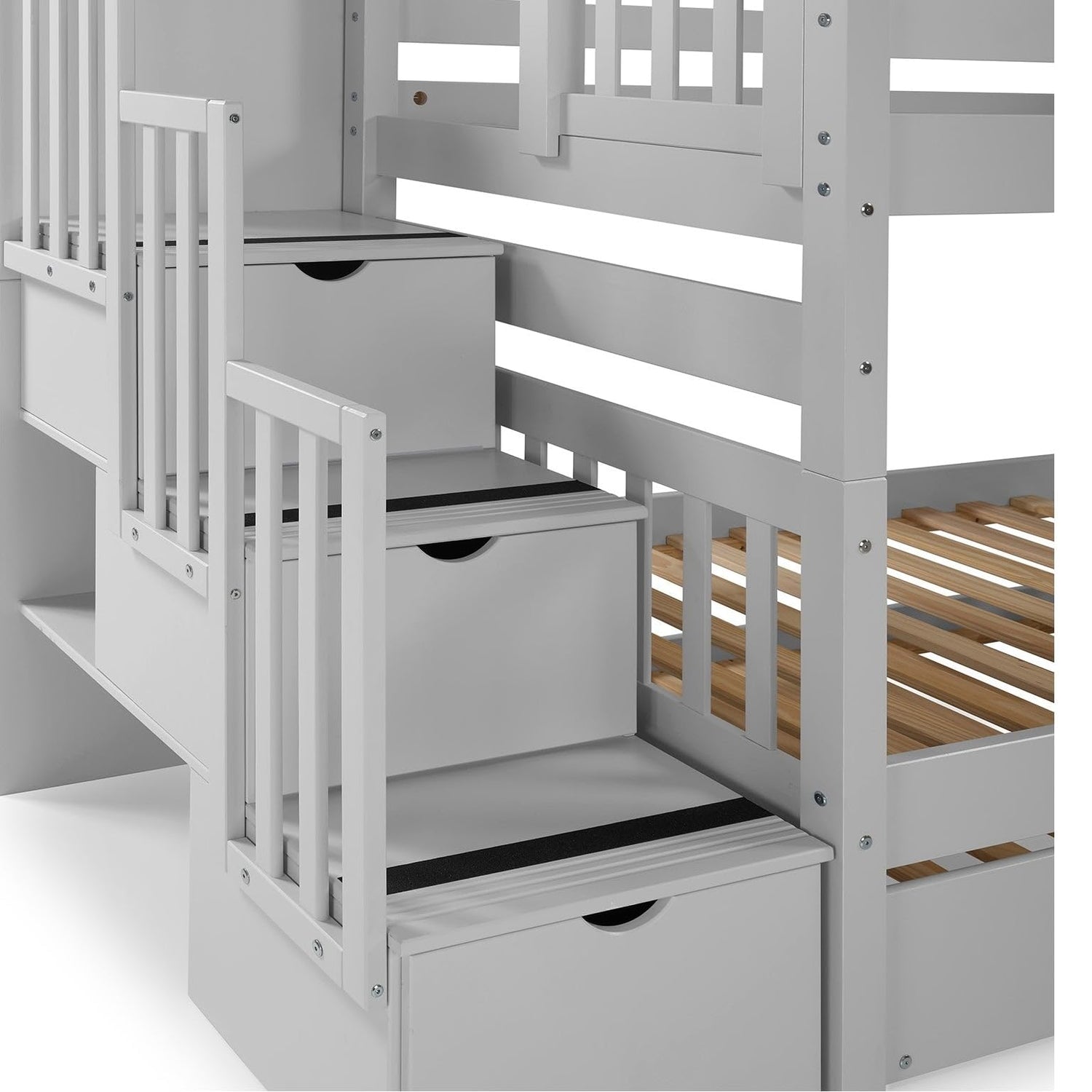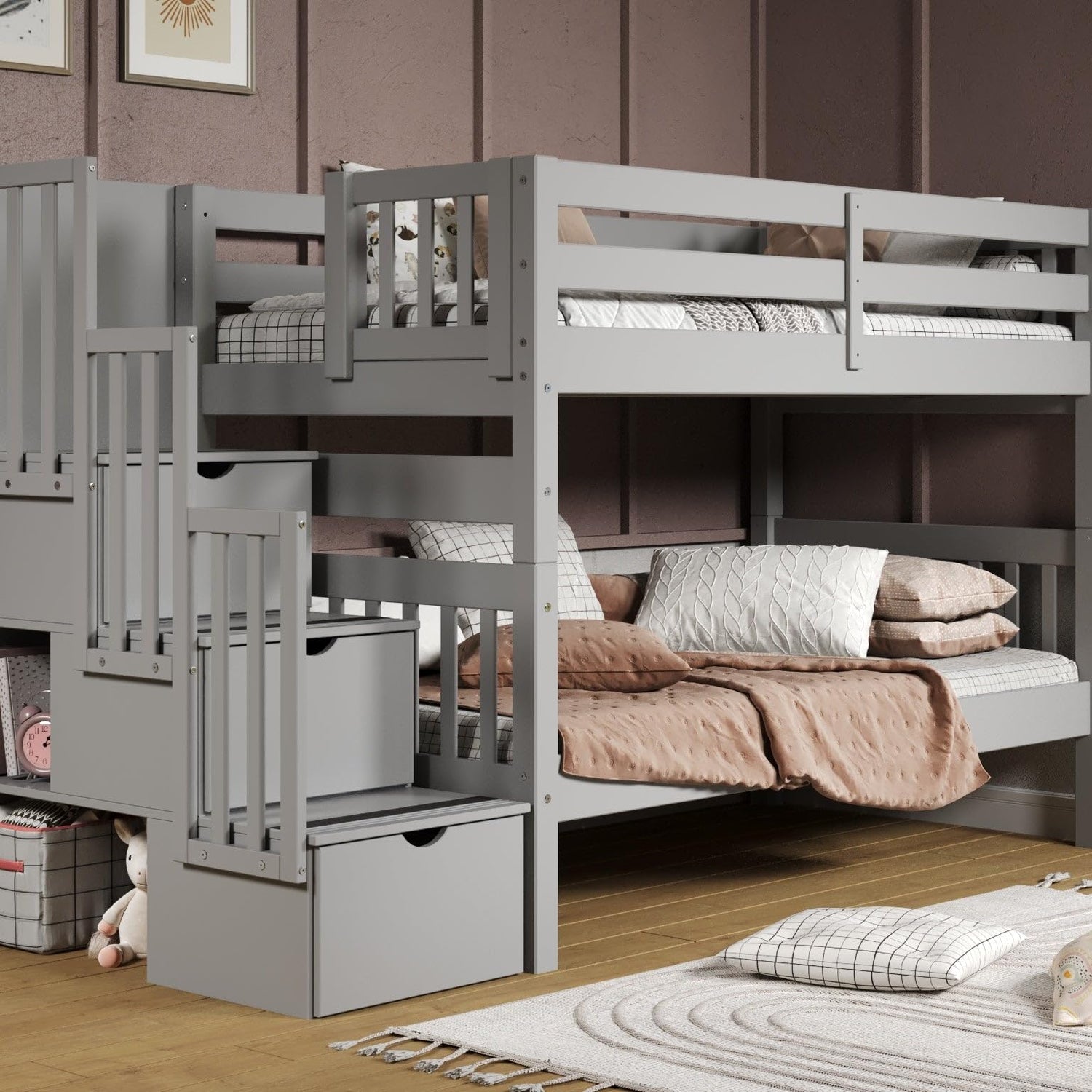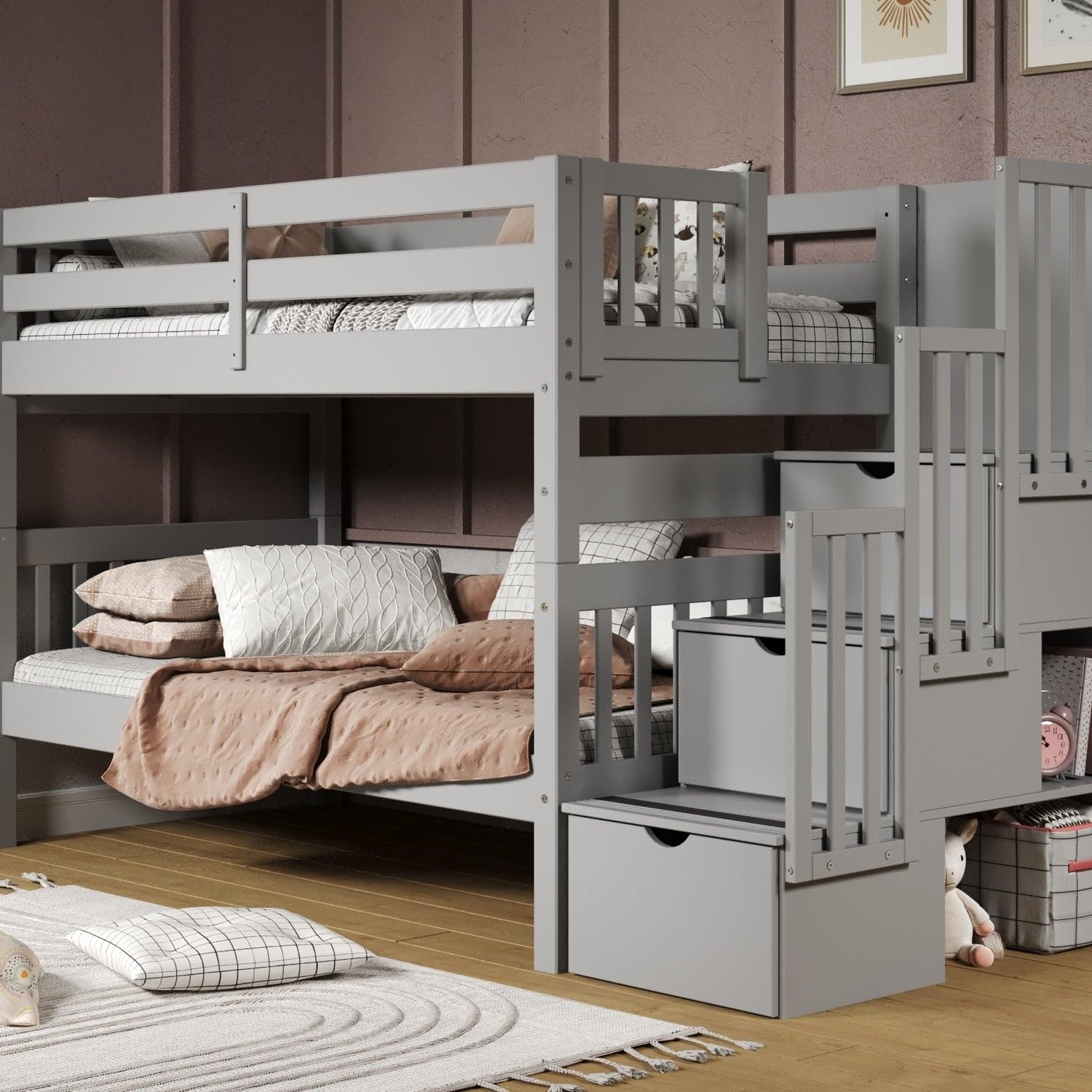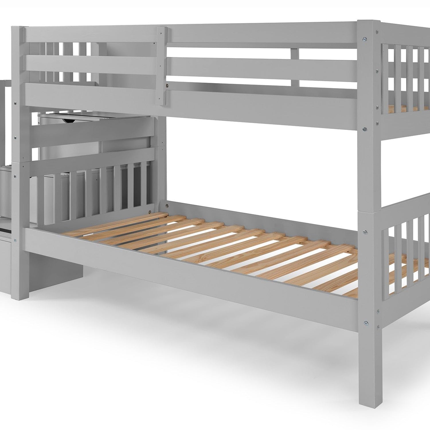 Bedz King Stairway Bunk Beds Twin over Twin with 3 Drawers in the Steps, Gray