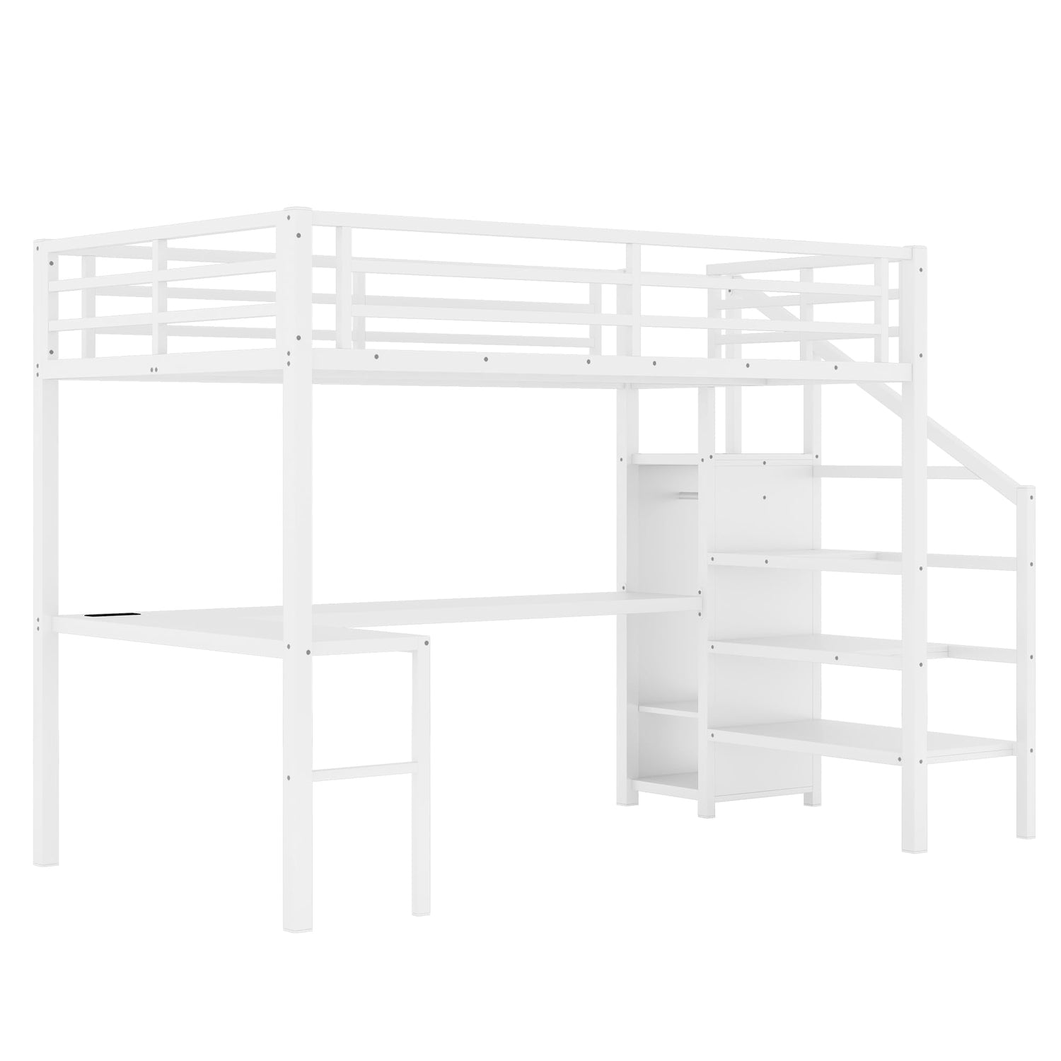 - 🏆【Heavy-Duty Loft Bed Frame】This full loft bed with desk is made of high-quality, heavy-duty metal, so it's strong and stable—no wobbling. The top bunk can hold up to 350 pounds. The full size loft bed frame comes with a sturdy and spacious staircase so kids can safely climb to the top bunk. The upgraded 13" reinforced full-length guardrails keep kids safe while they sleep.