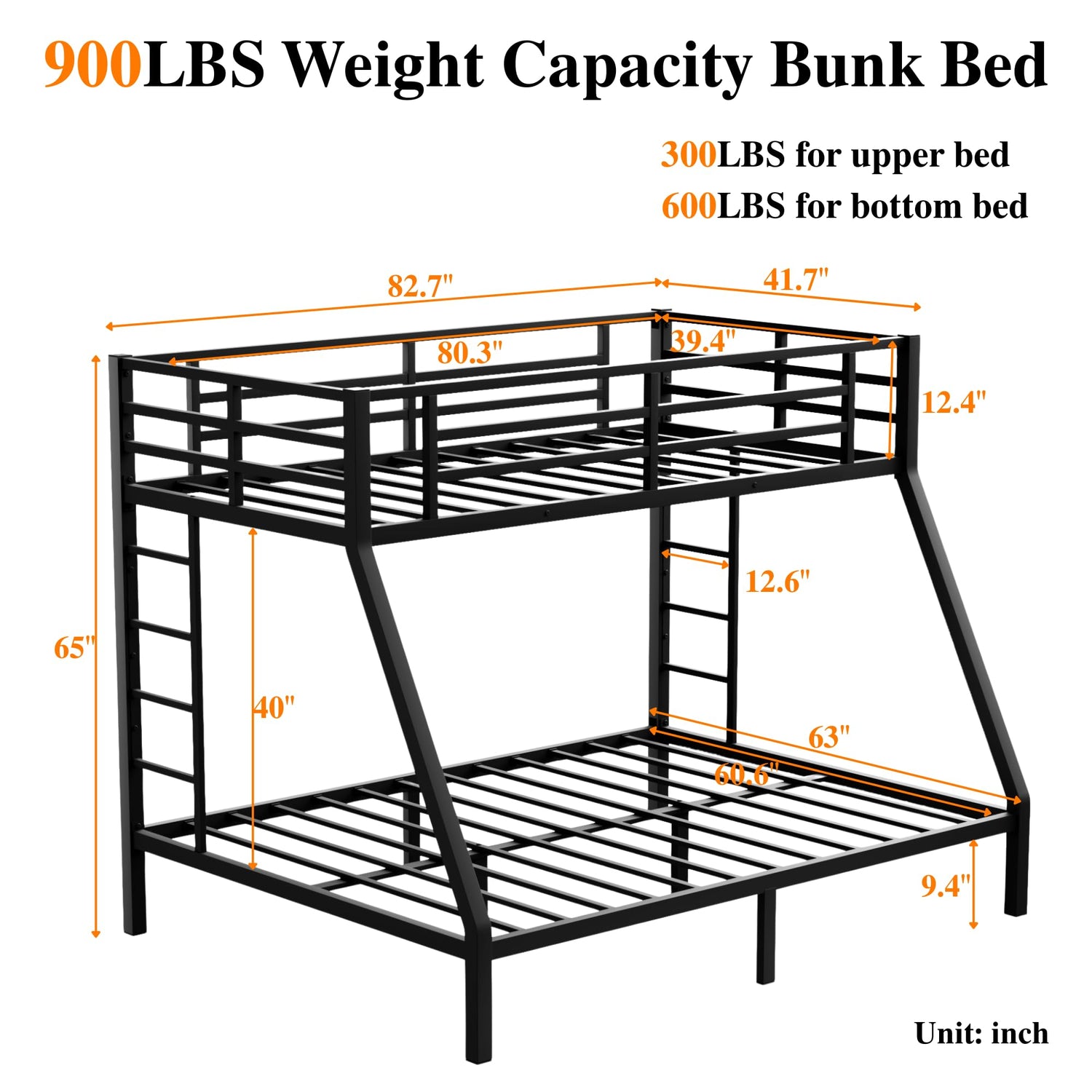 - 💯【Heavy-Duty Metal Construction】This metal bunk bed is built with industrial-grade steel and a durable electrostatic powder coating that resists rust, fading, and scratches. Perfect for adult bunk beds heavy duty use, it supports up to 350 lbs on the lower queen bed and 250 lbs on the upper Twin XL. Easy to clean and built to last for years!