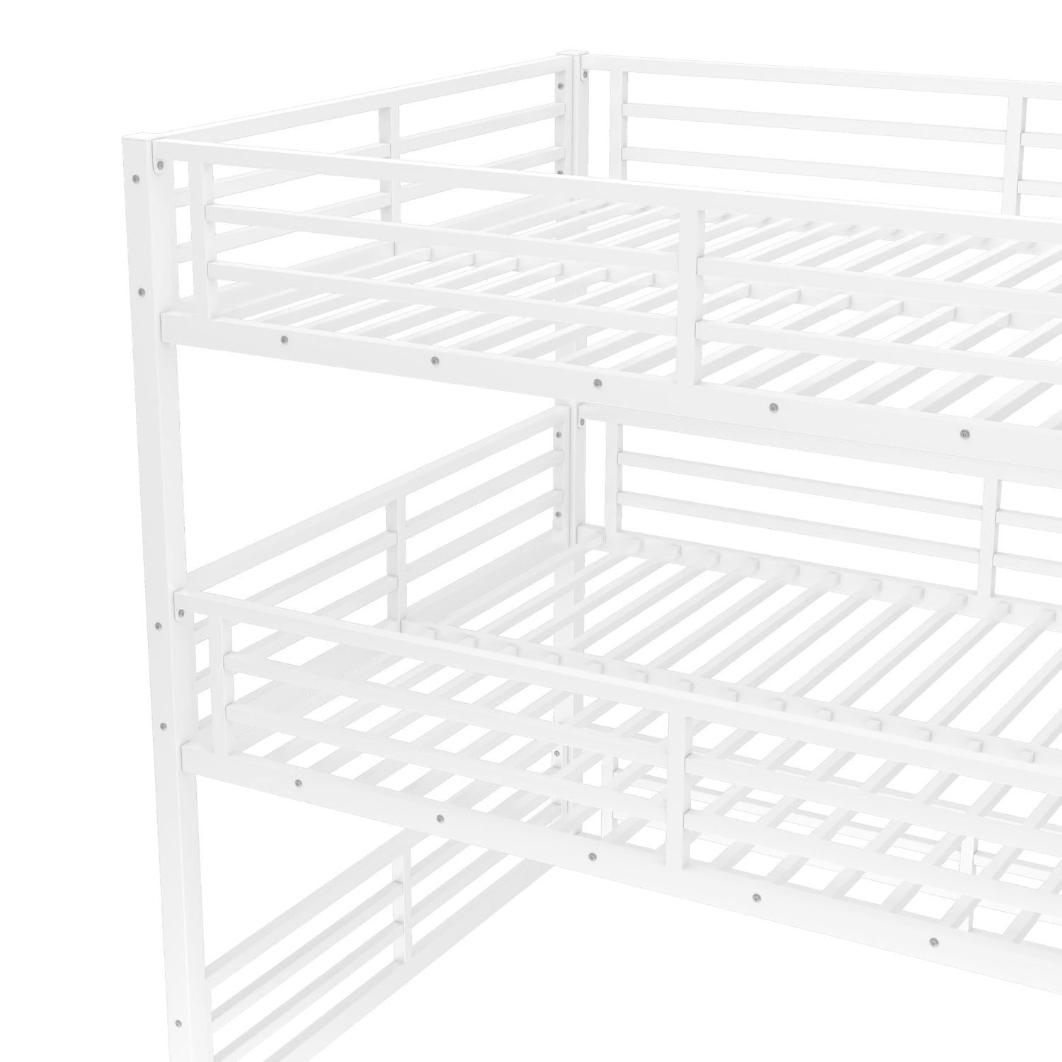 Bellemave Triple Bunk Bed Queen Size, Heavy Duty 3 Bunk Beds with Safety Guardrails and Noise-Reduced Design, Metal Triple Bed for 3 Kids, Teens, Adults, No Box Spring Needed White
