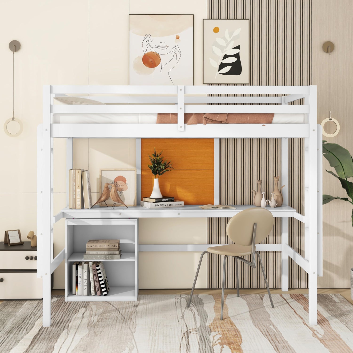 Bellemave Twin Loft Bed with Desk and Storage – Solid Wood Frame in White