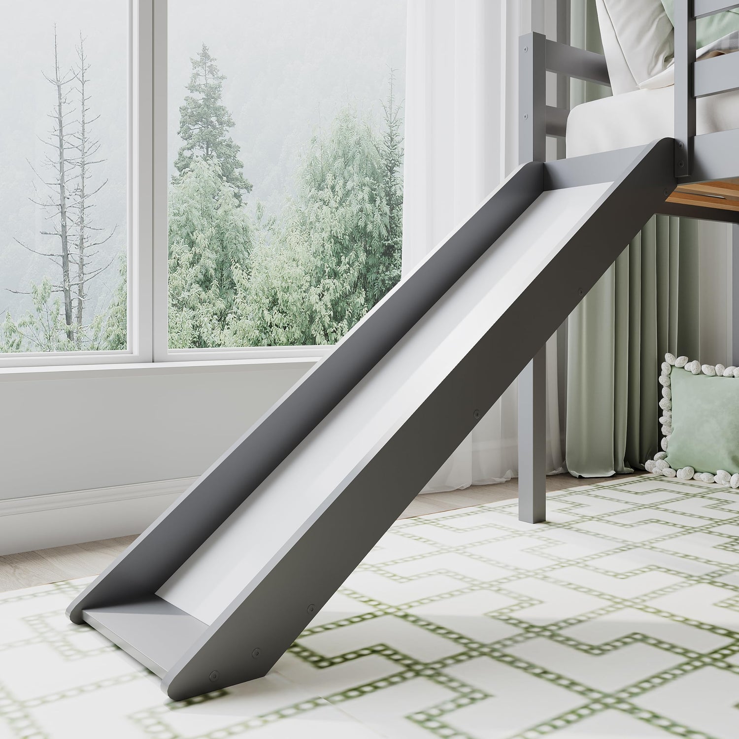 Callales Grey Twin Solid Wood Loft Bed with Slide & Removable Ladder