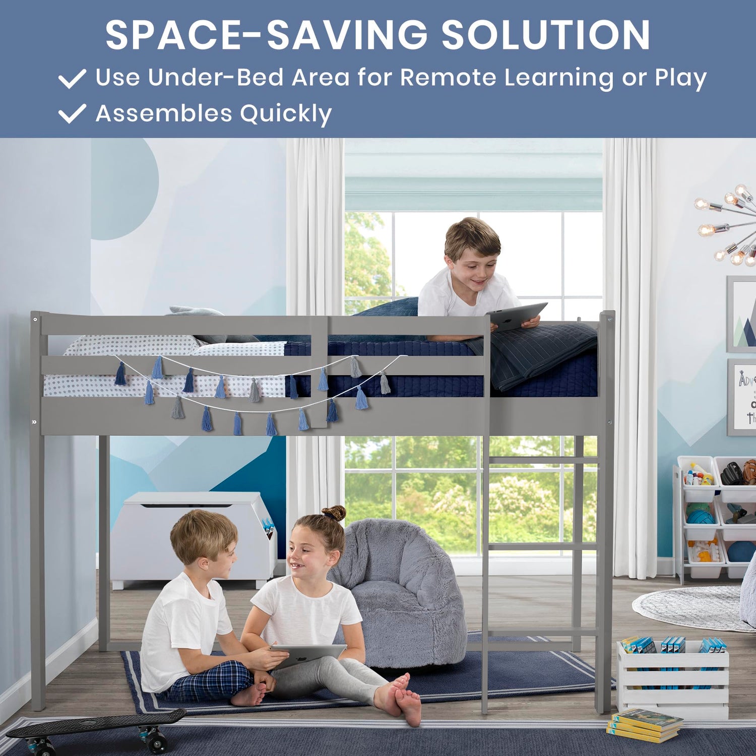 Delta Children Twin Loft Bed with Guardrail and Ladder (Coordinates with Batman, Spider-Man & Harry Potter Tents Sold Separately), Grey