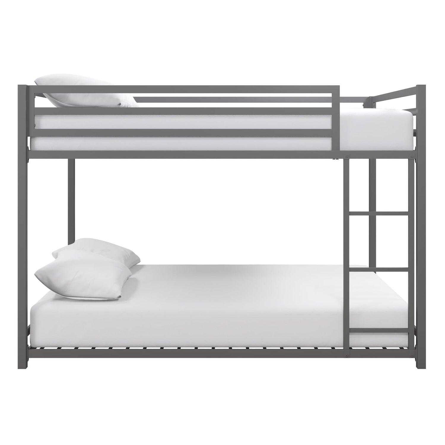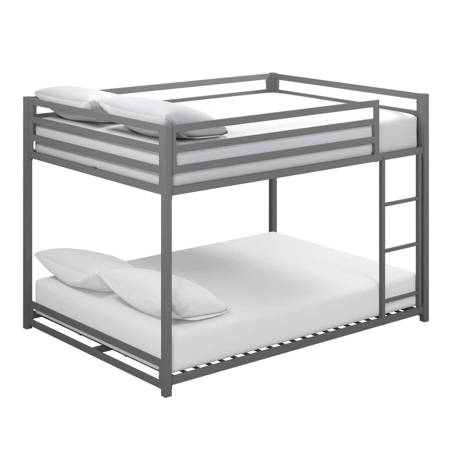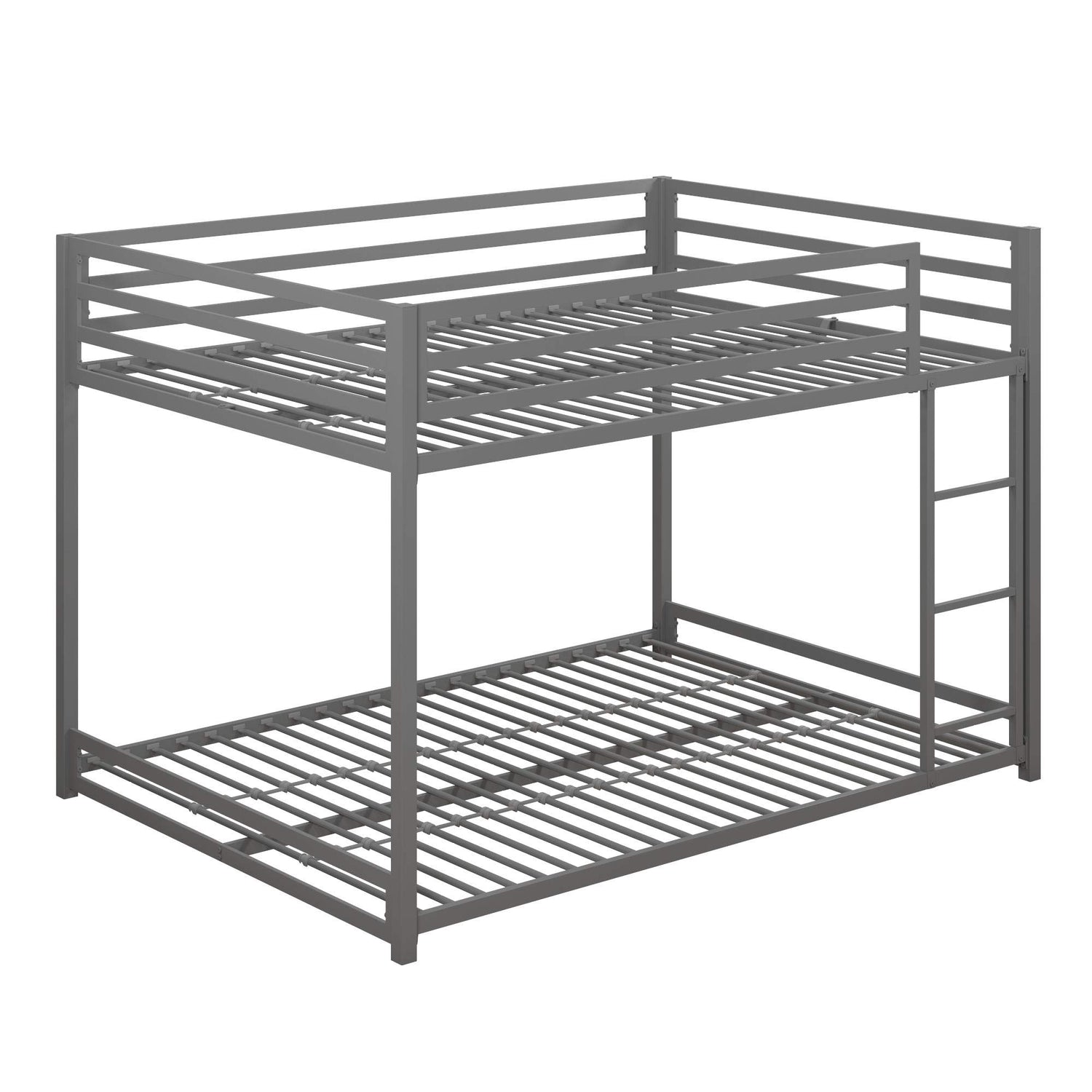DHP Miles Low Metal Bunk Bed Frame for Kids, With Built-in Ladder, High Guardrail and Metal Slats, Floor Bed Bottom Bunk, No Boxspring Required, For Small Spaces, Full-Over-Full, Silver