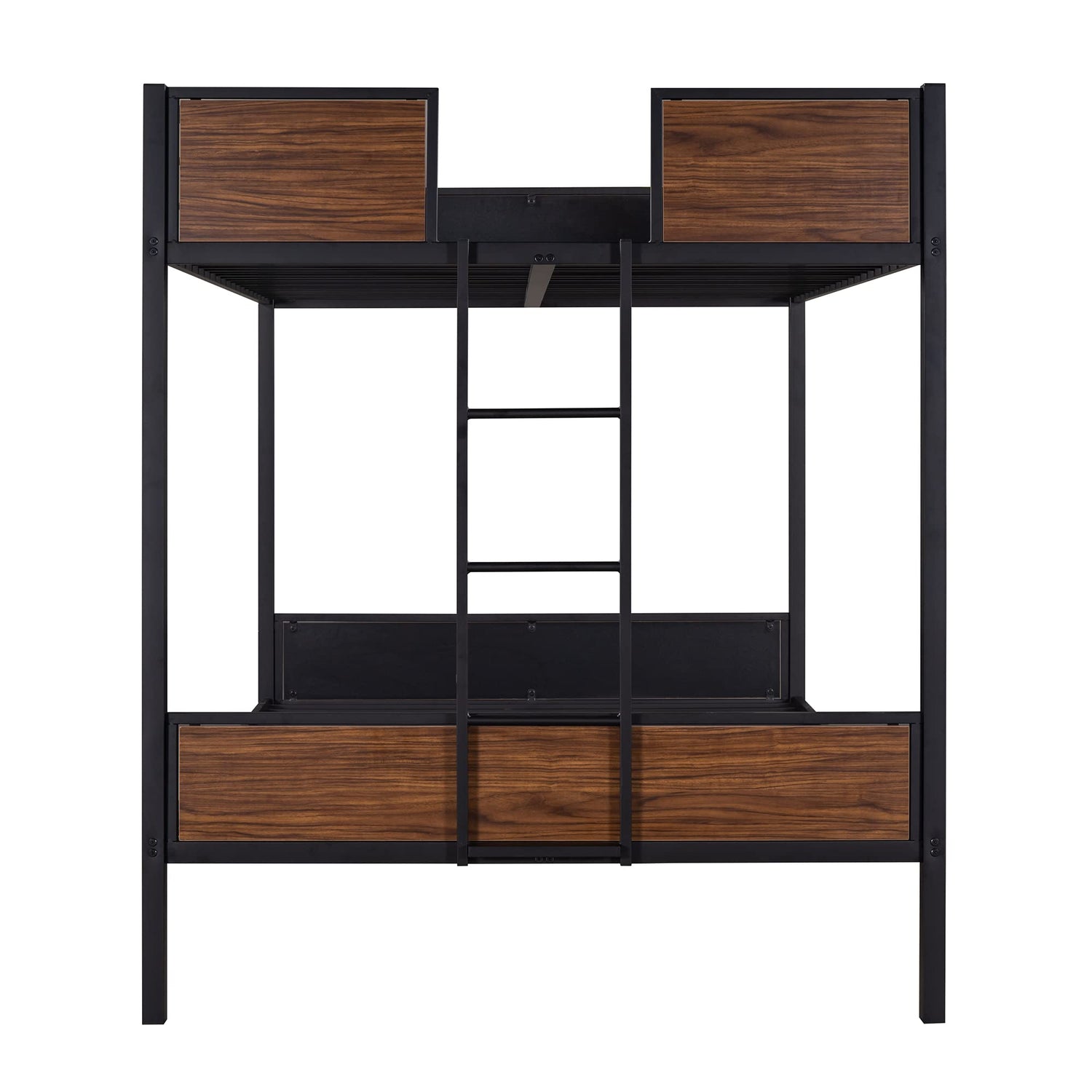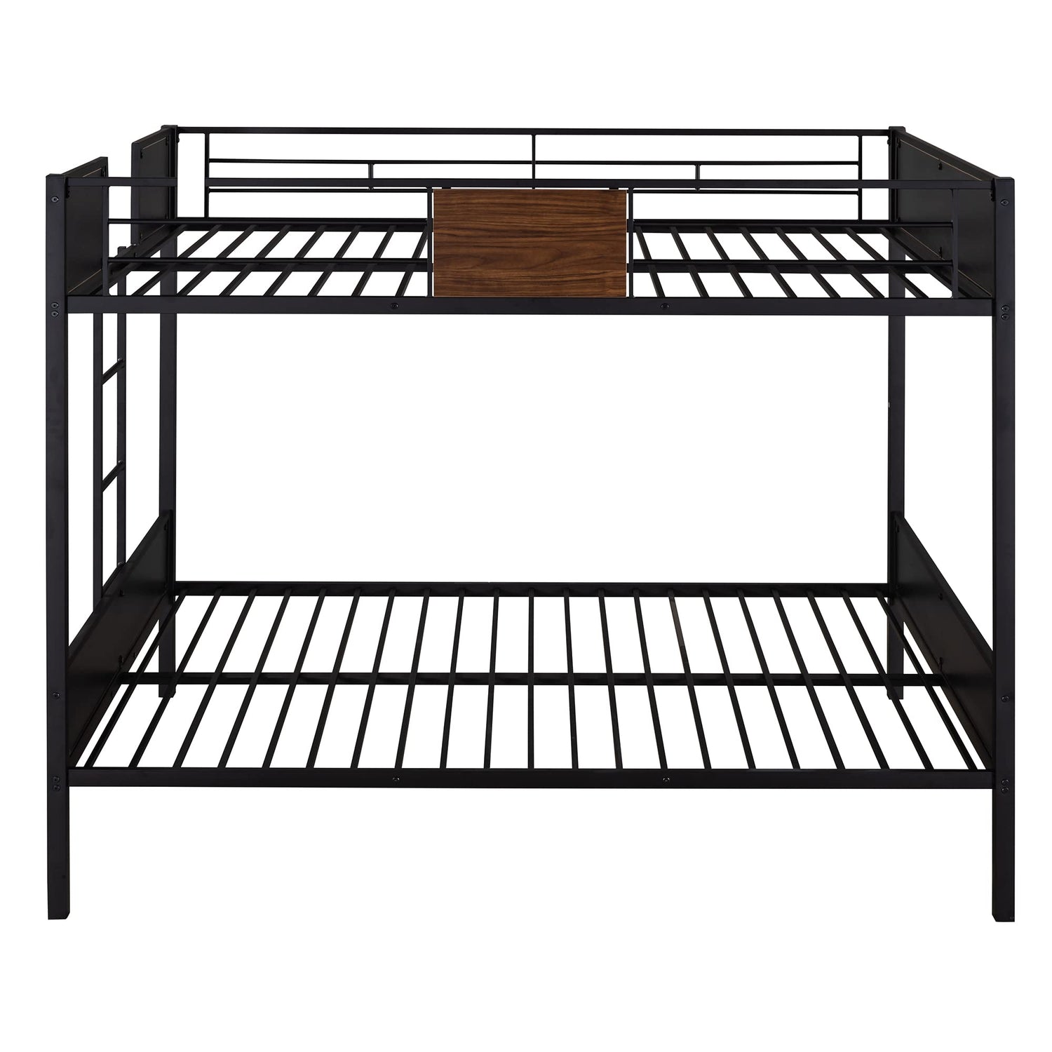 Full Over Full Metal Bunk Bed, Modern Style Heavy-Duty Steel Frame Bunk Bed with Safety Rail, Built-in Ladder for Bedroom, Dorm (Black + Brown)