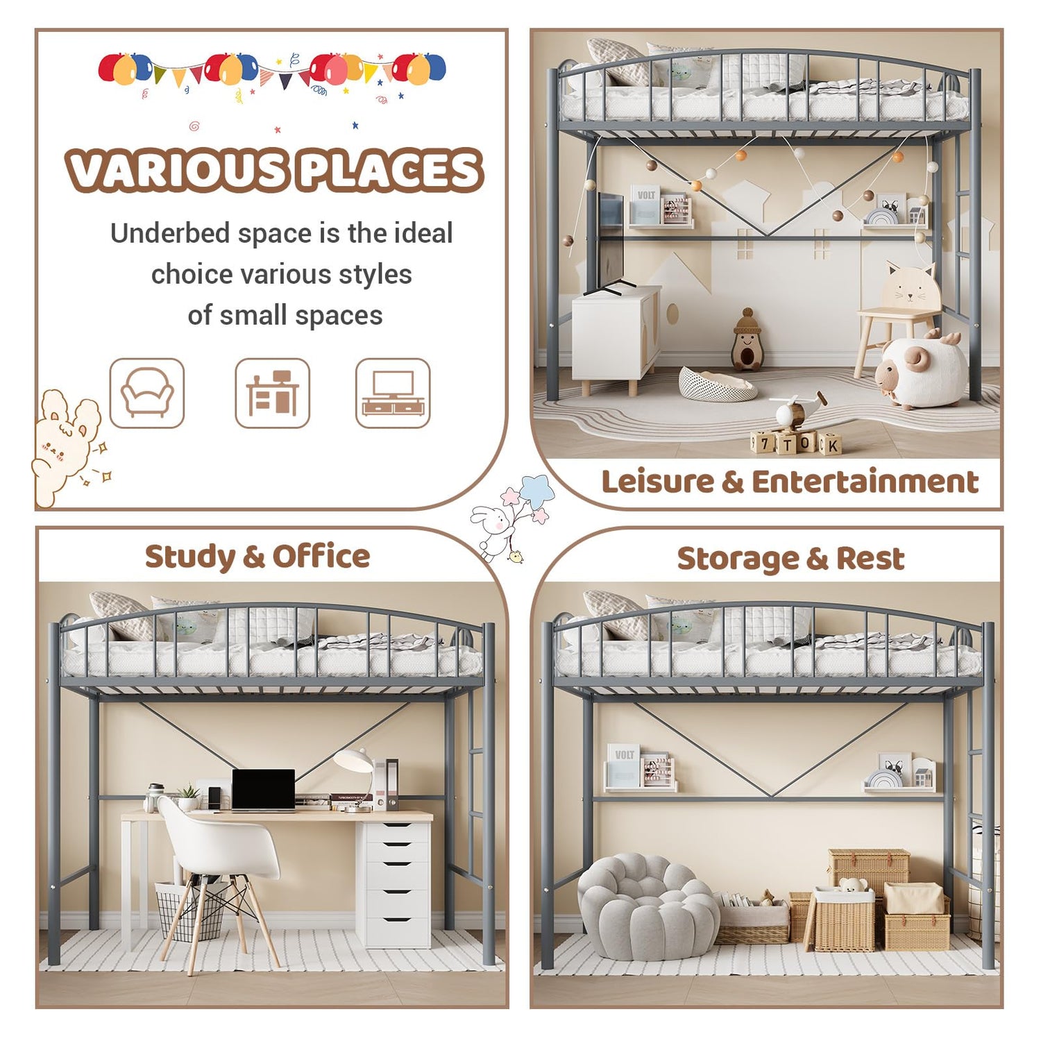 - 【Space-Saving Design】With 46.5 inches of clearance from the bed slats to the floor, this loft bed provides ample space underneath for storage, play, or other activities. Perfect for small rooms, apartments, it helps maximize your living space while offering both functionality and comfort