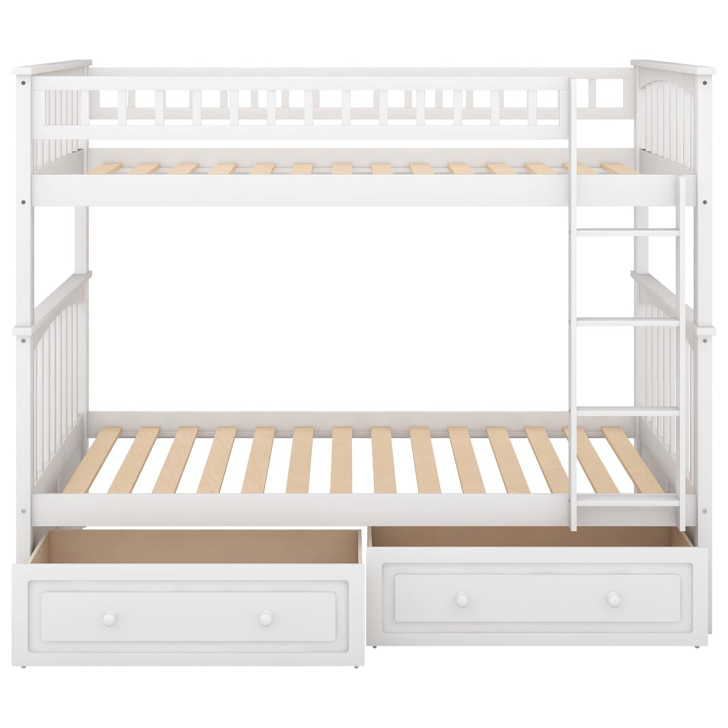 Harper & Bright Convertible Wood Twin-Over-Twin Bunk Bed with Storage Drawers and Ladder - Can Be Divided Into Two Daybeds (White)