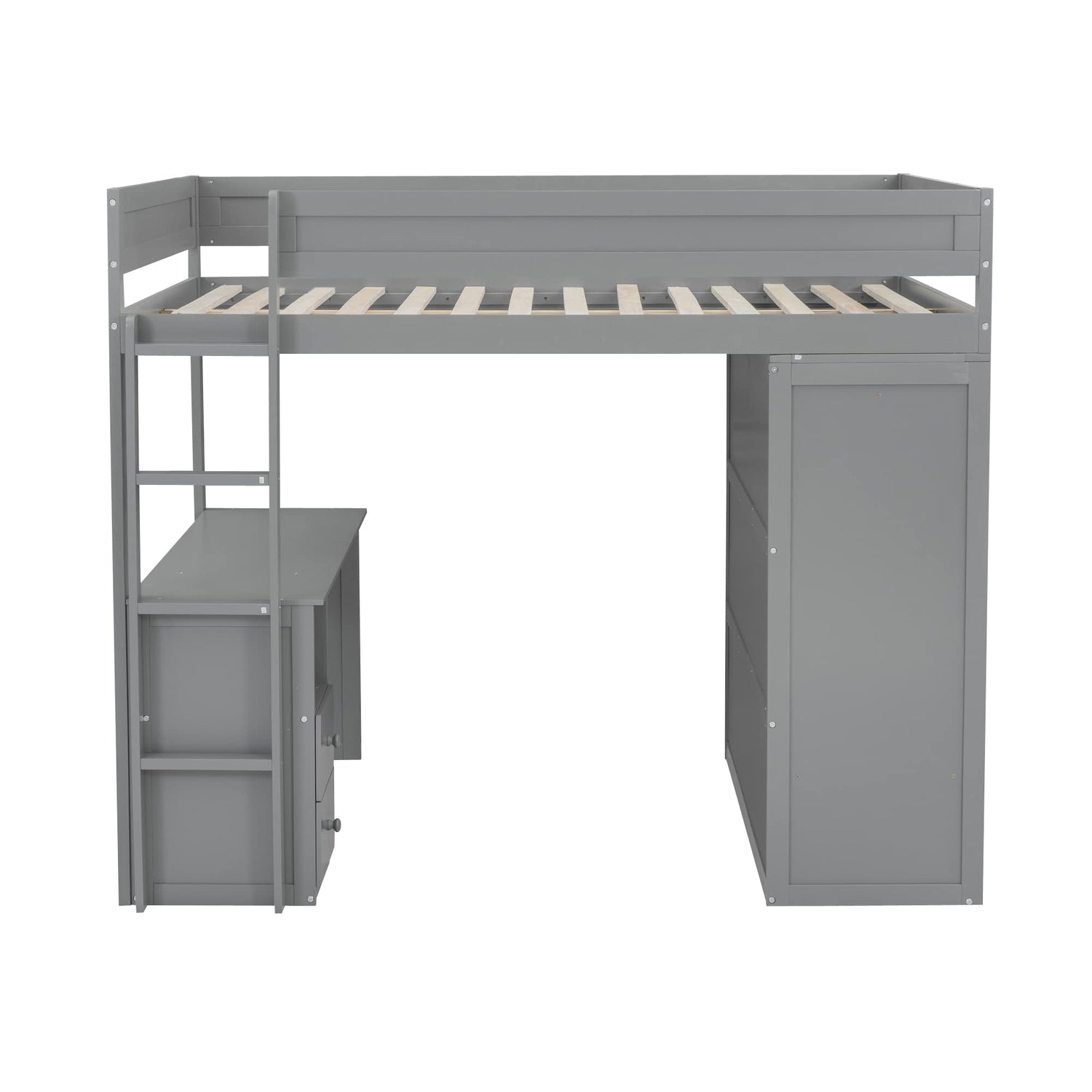 Harper & Bright Designs Gray Full Size Loft Bed with Integrated Desk and Wardrobes