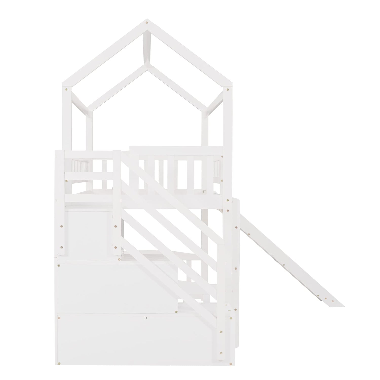 House Bed Loft with Slide and Storage Stairs by Harper & Bright Designs - Twin Frame in White for Kids