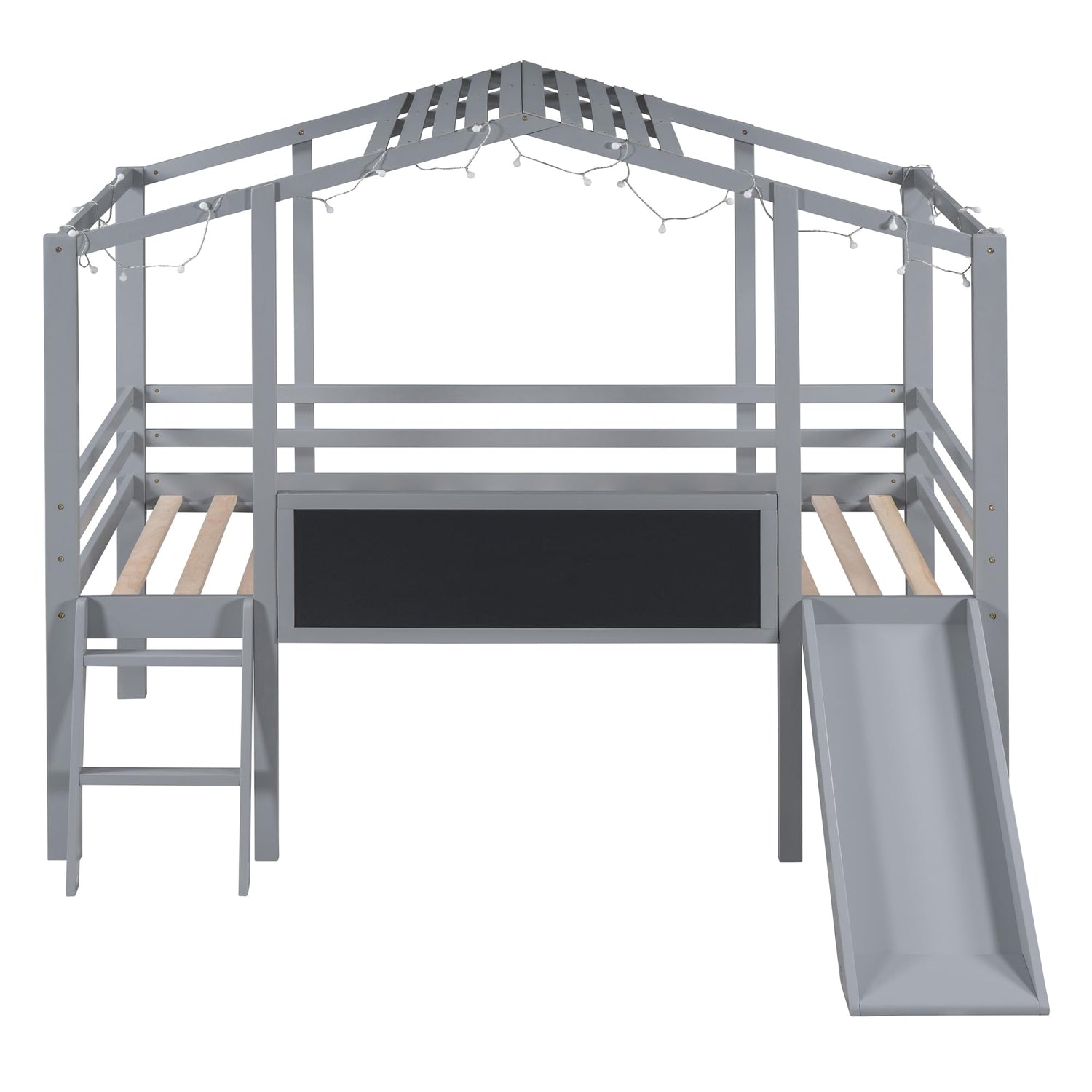 • [House Bed with Slide and Blackboard] - This twin size low loft bed comes with a smooth slide, bringing extra fun for your kid’s bedroom. The blackboard that comes with the bed can be freely doodled on. This twin size house loft bed combining entertainment and practicality, great for any boys/girls bedroom.