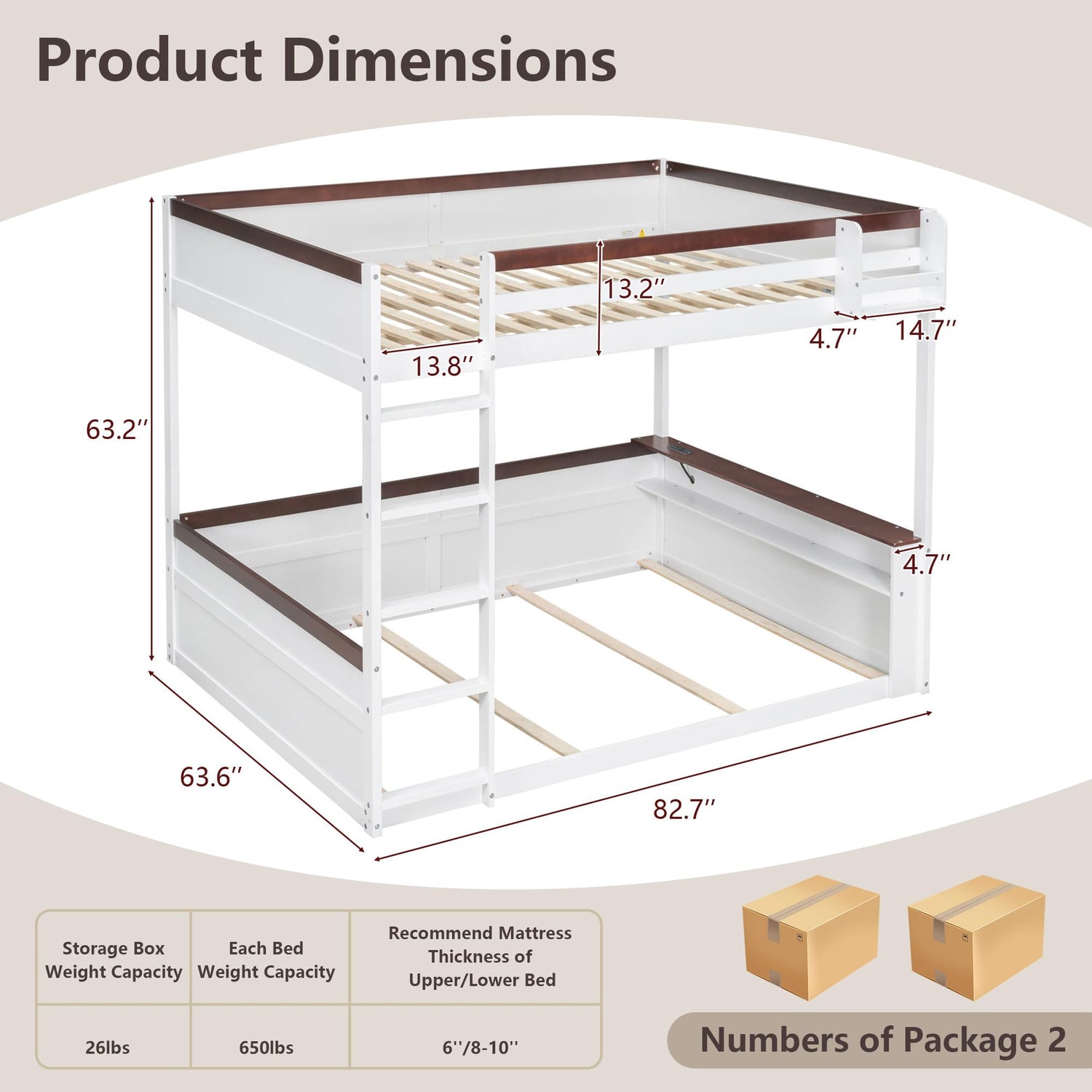 - ⭐ 【Queen Over Queen Bunk Bed with Smart Storage】 This queen over queen bunk bed features under-bed shelves, a top storage box, and a side bookshelf desk—making it perfect for small spaces. This queen size bunk bed is ideal for shared rooms or guest areas, combining sleep and smart storage in one stylish design.