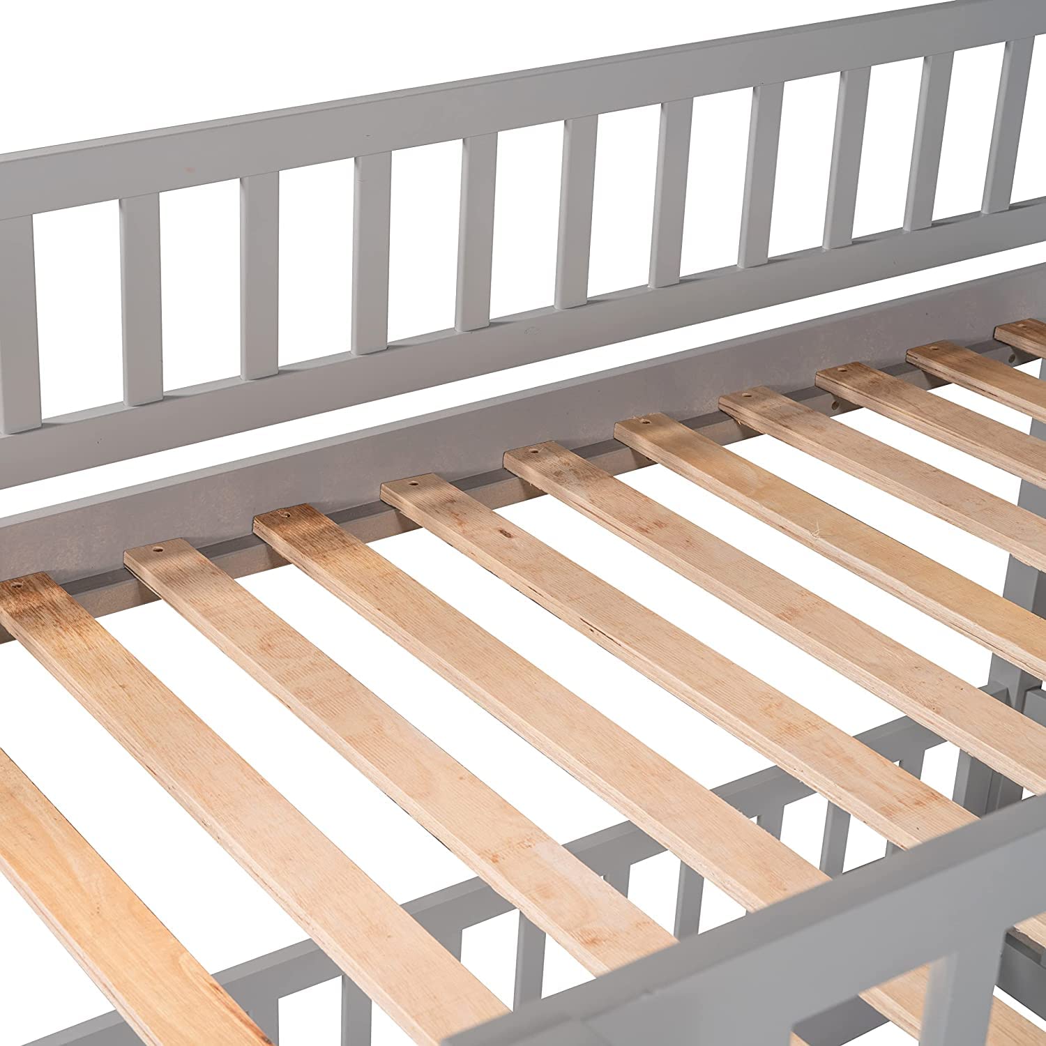 - 【Sturdy and Durable Wood Bunk Bed 】This toddler bunk bed crafted with superior quality solid pine wood bed frame, this slide bunk bed frame is sturdy and solid, sturdy wood construction, no squeaks, and wobbles when you are going up or down.upper bed with full length guardrails make it safer for your kids berth to sleep.