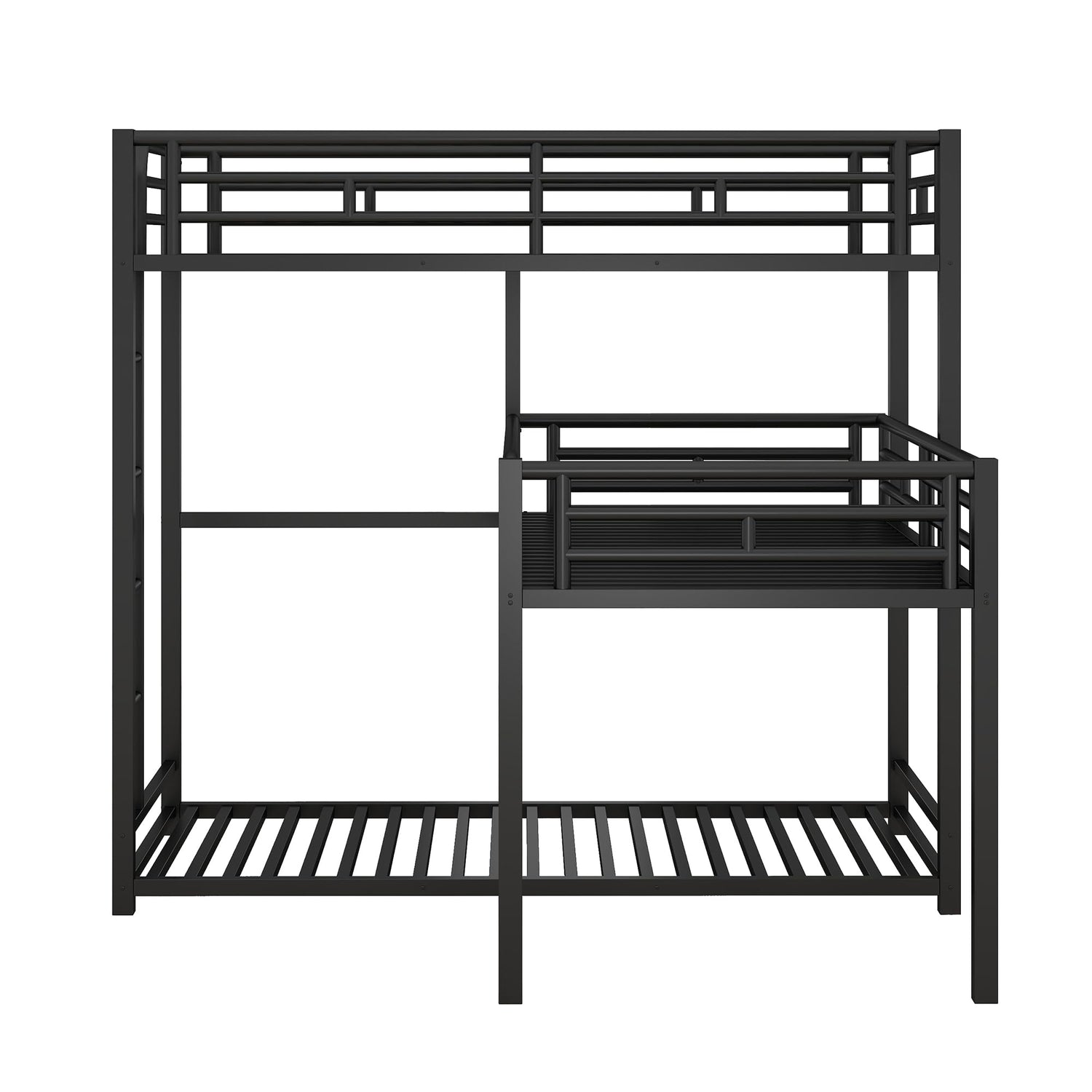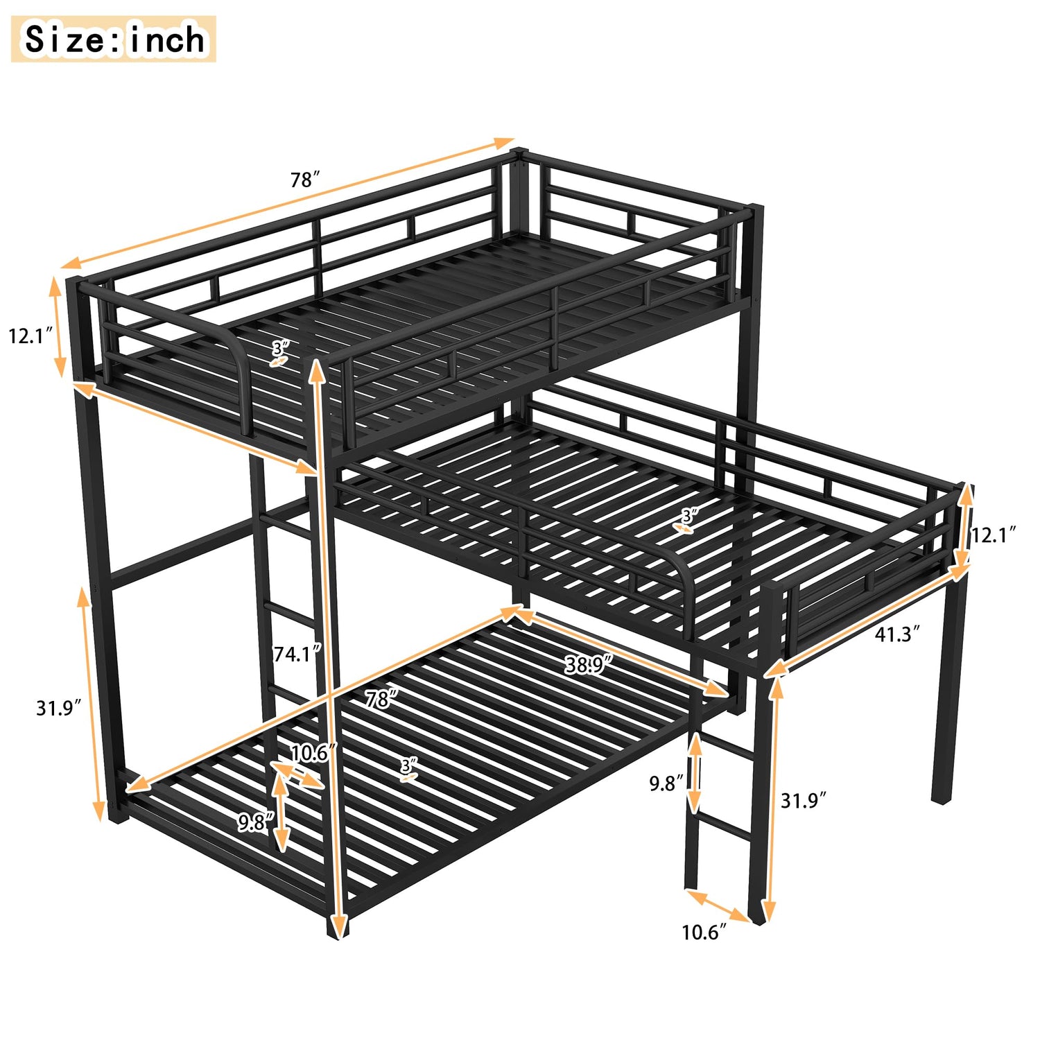 Harper&Bright Designs Metal L-Shaped Triple Double Bed, Stable Frame, Full Guardrail, Space Saving Double/Triple Bed, Black