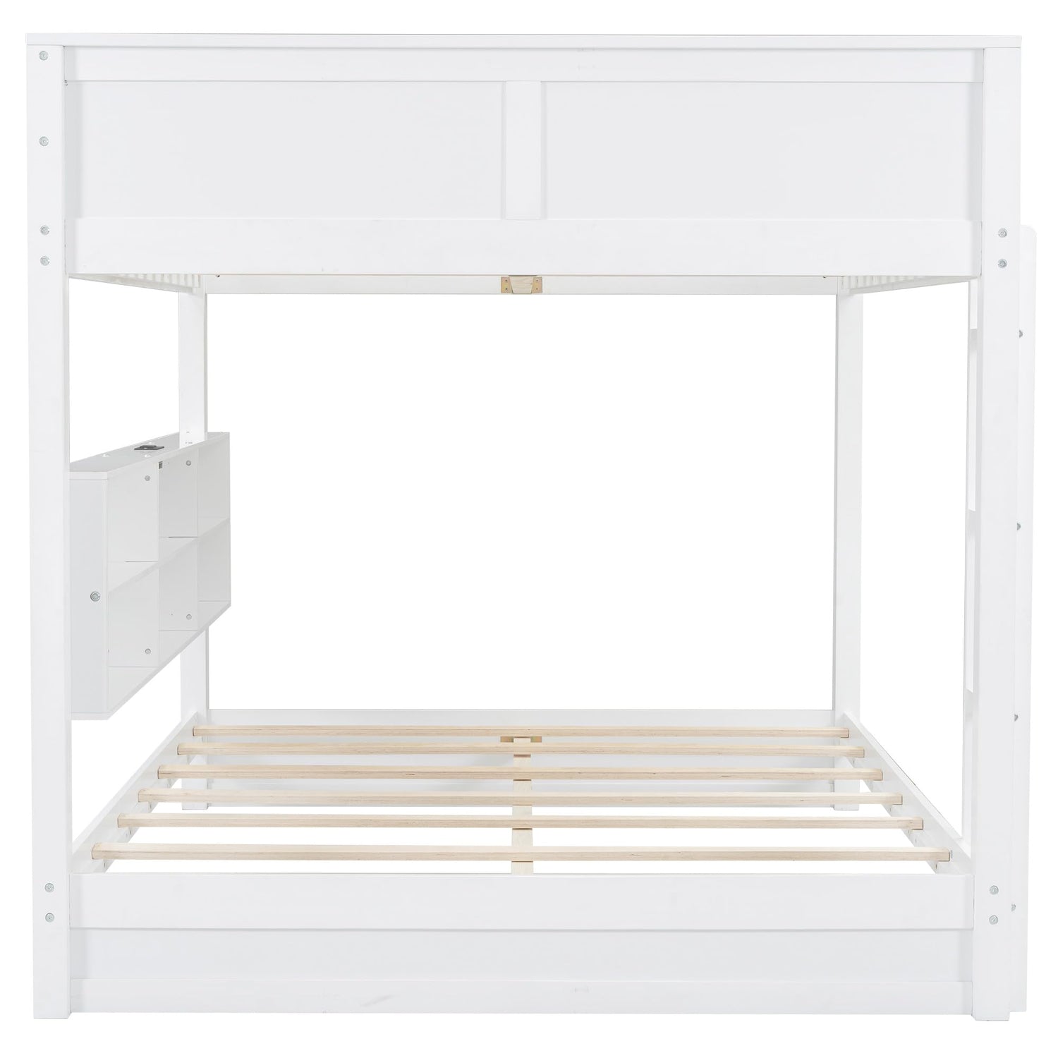 Harper & Bright Designs Queen Over Queen Bunk Bed with Storage Cabinets and USB Ports, Solid Wood Bunk Bed Frame with Built-in Shelves Beside Bottom Bed, for Kids Teens Adults - White