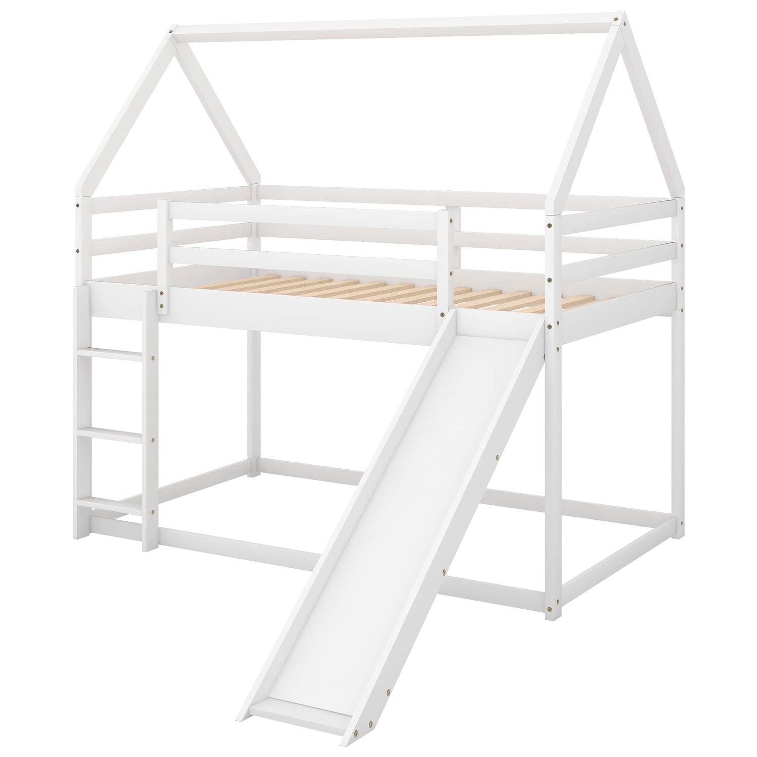 Harper & Bright Designs Twin Over Twin Low Bunk Bed with Slide, Solid Wood House Bunk Bed for Kids Girls Boys (White)