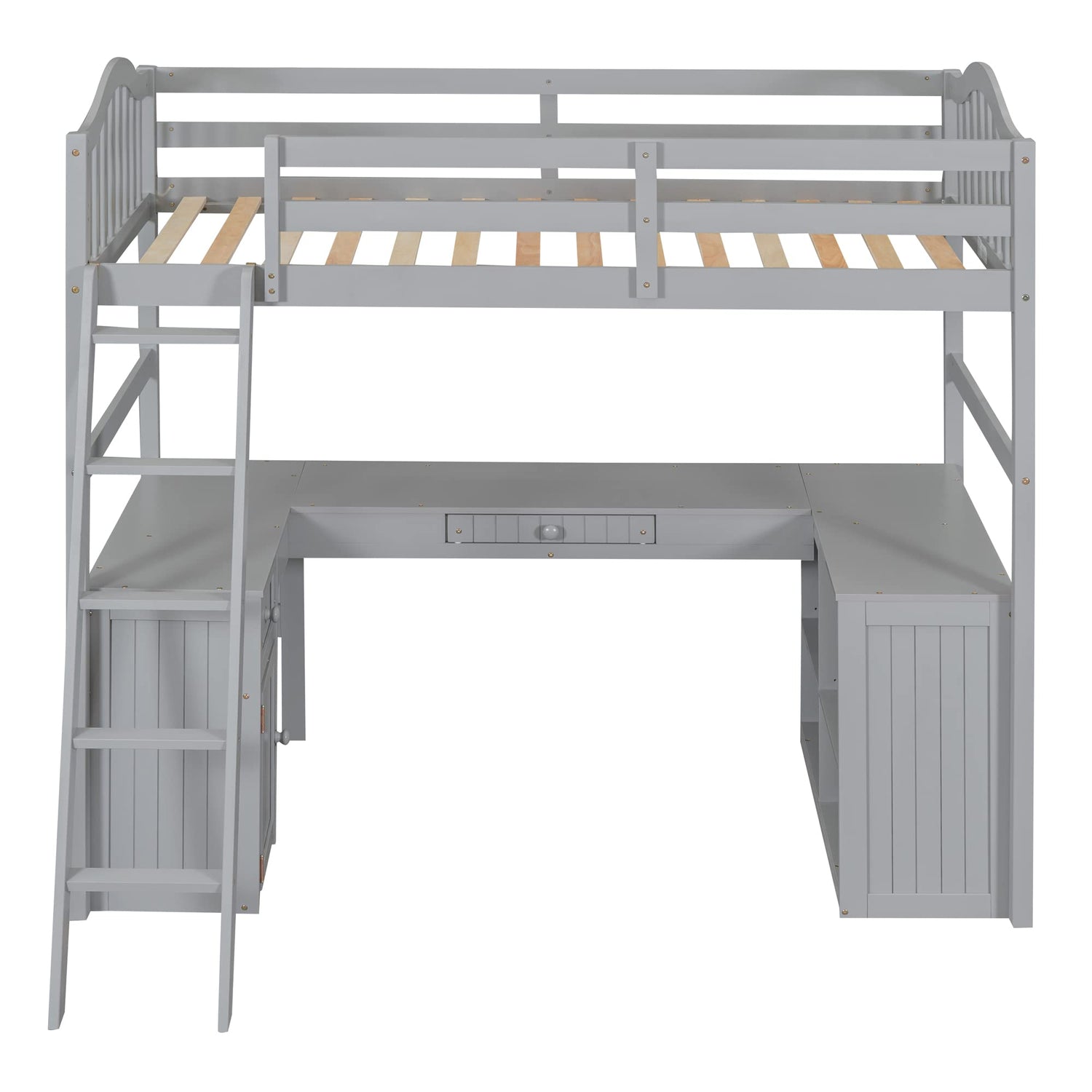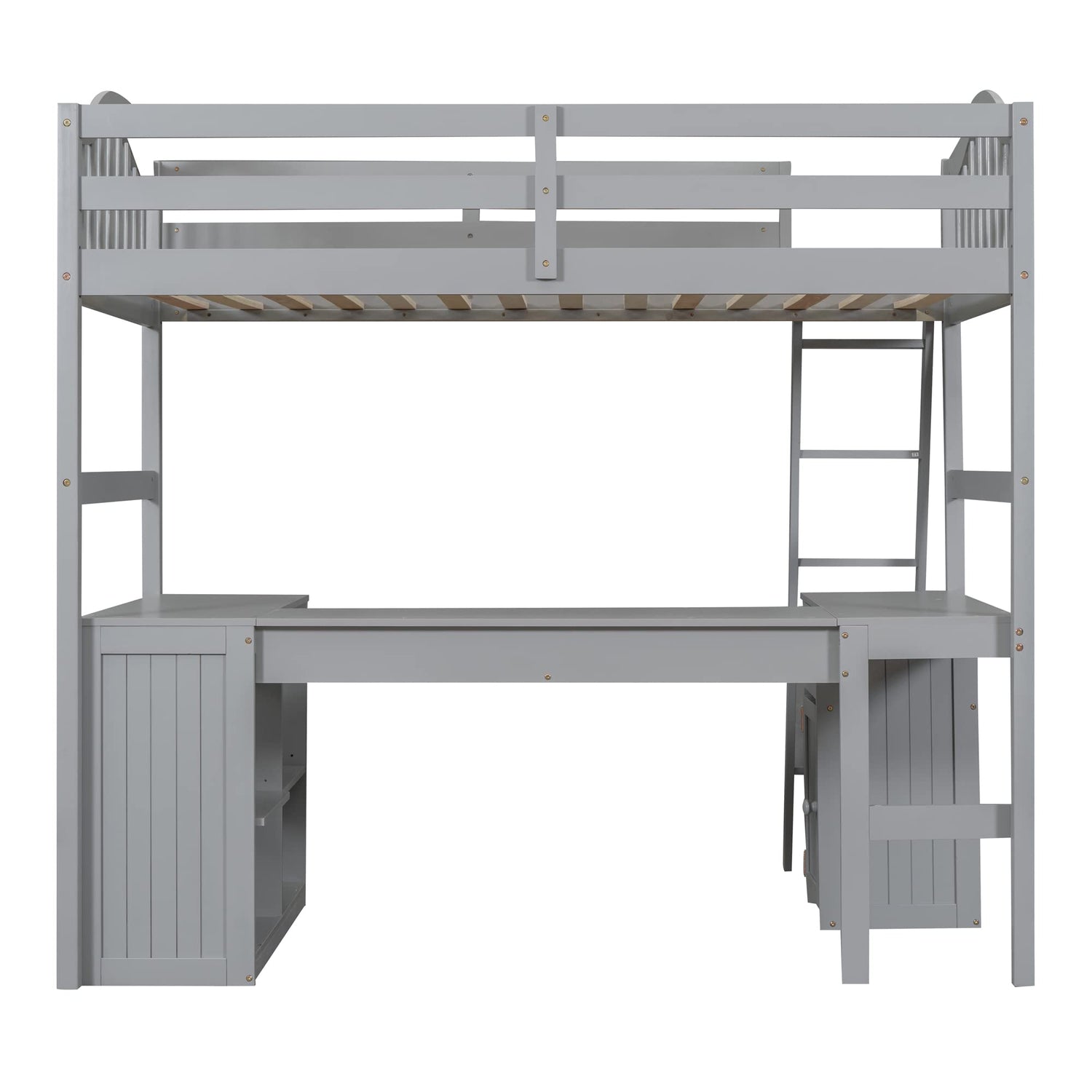 Harper & Bright Designs Grey Twin Size Loft Bed with Integrated Desk, Drawers, and Storage Solutions for Kids and Teens