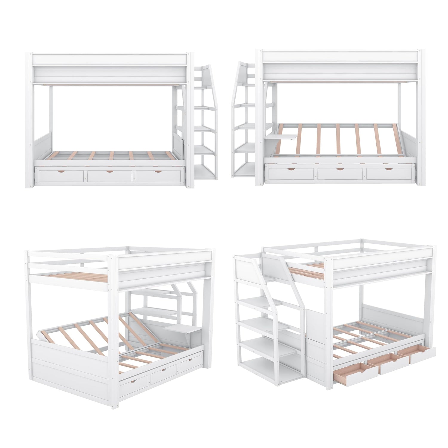 Harper & Bright Designs Wooden Bunk Bed,Full Over Full Bed with Drawers and Staircase for Storage, Multi-Functional Convertible Full Size Daybeds Futon Bed, No Box Spring Needed,White