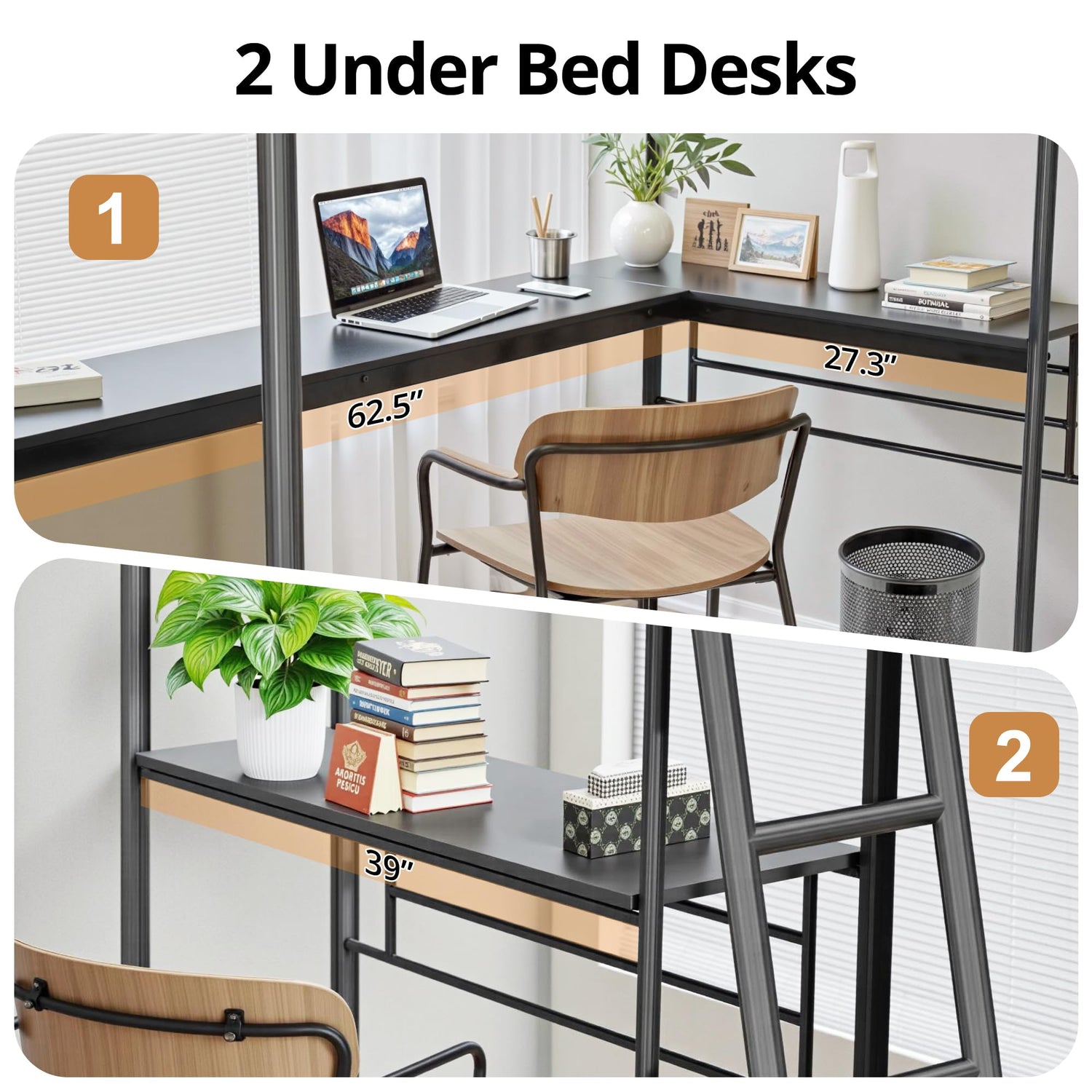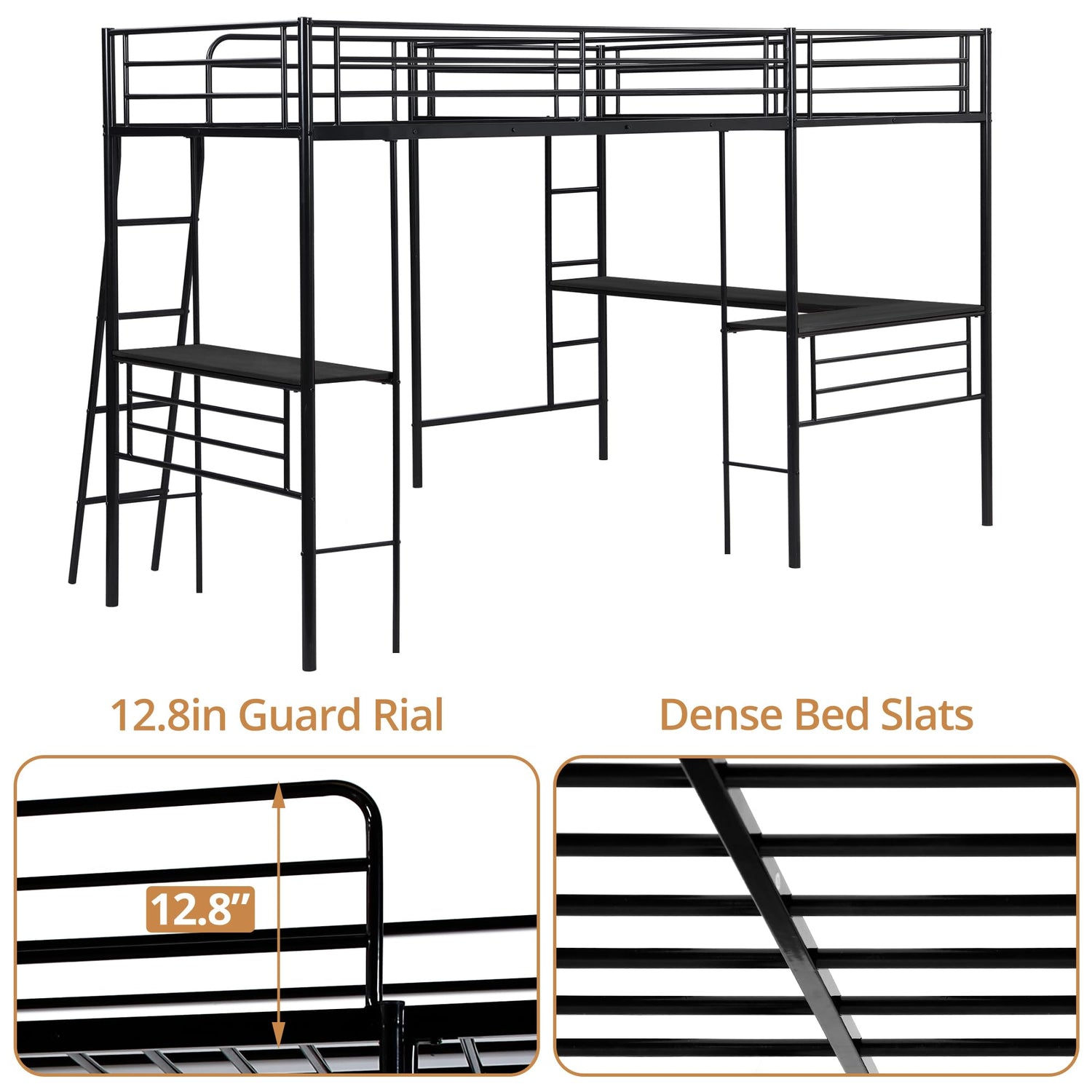 - [L Shaped Metal Loft Bed with 2 Desk]: Our L shaped twin loft bed comes with two built-in desks, It is a good place for you to read, do homework, work or play and create your own world to be explored or you can use it for storing function. sleek and space-saving design adds a touch of elegance to the bedroom.