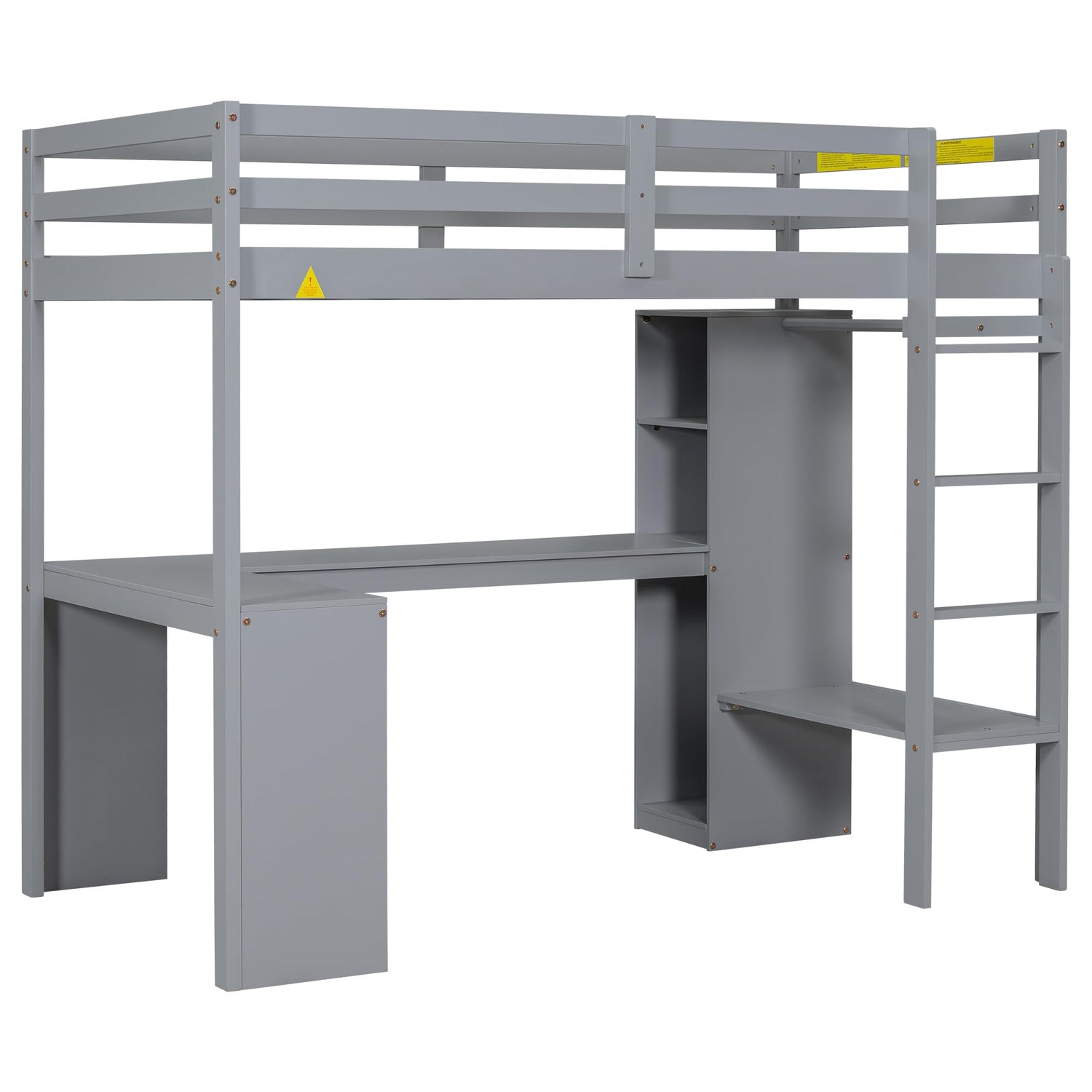 - [Integrated Wardrobe & Shelves] - Featuring a convenient wardrobe section with a hanging rod, this loft bed offers vertical storage for longer garments such as dresses, coats, and pants. Open shelves provide easy access to books, accessories, or décor items