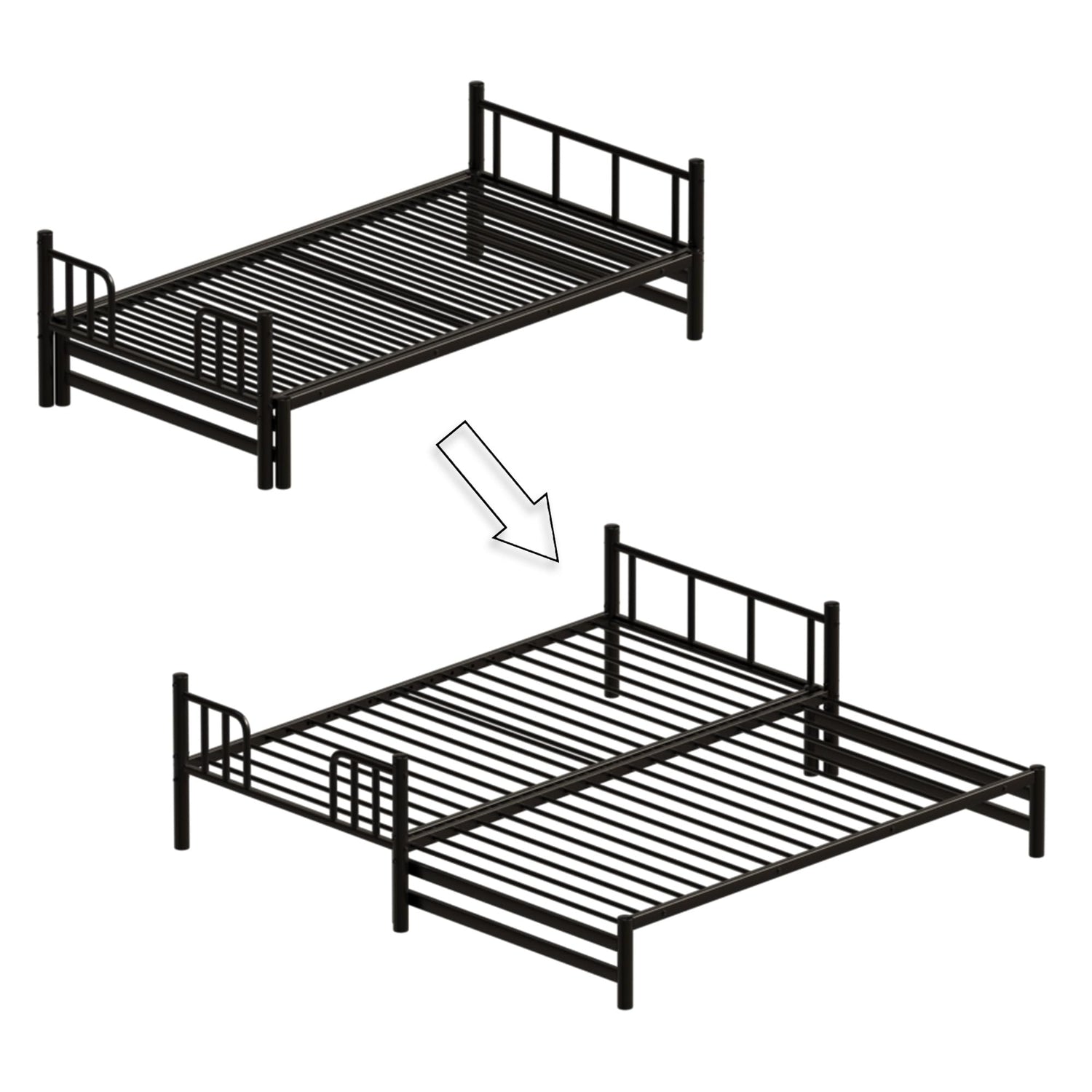 KEIKI Twin Over King Bunk Bed, Extendable Bunk Beds, Pull-Out Bunk Bed Frame Can Be Extendable, No Box Spring Needed