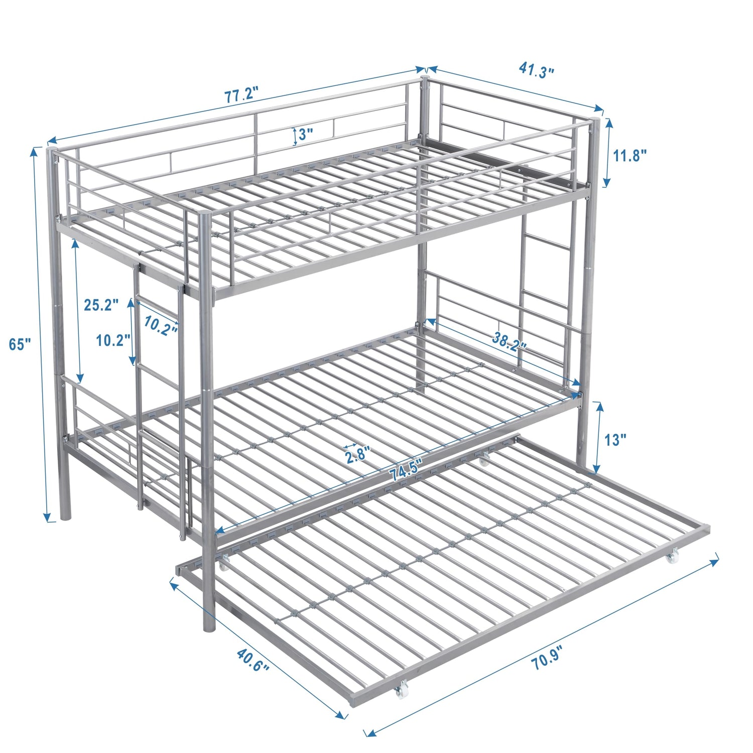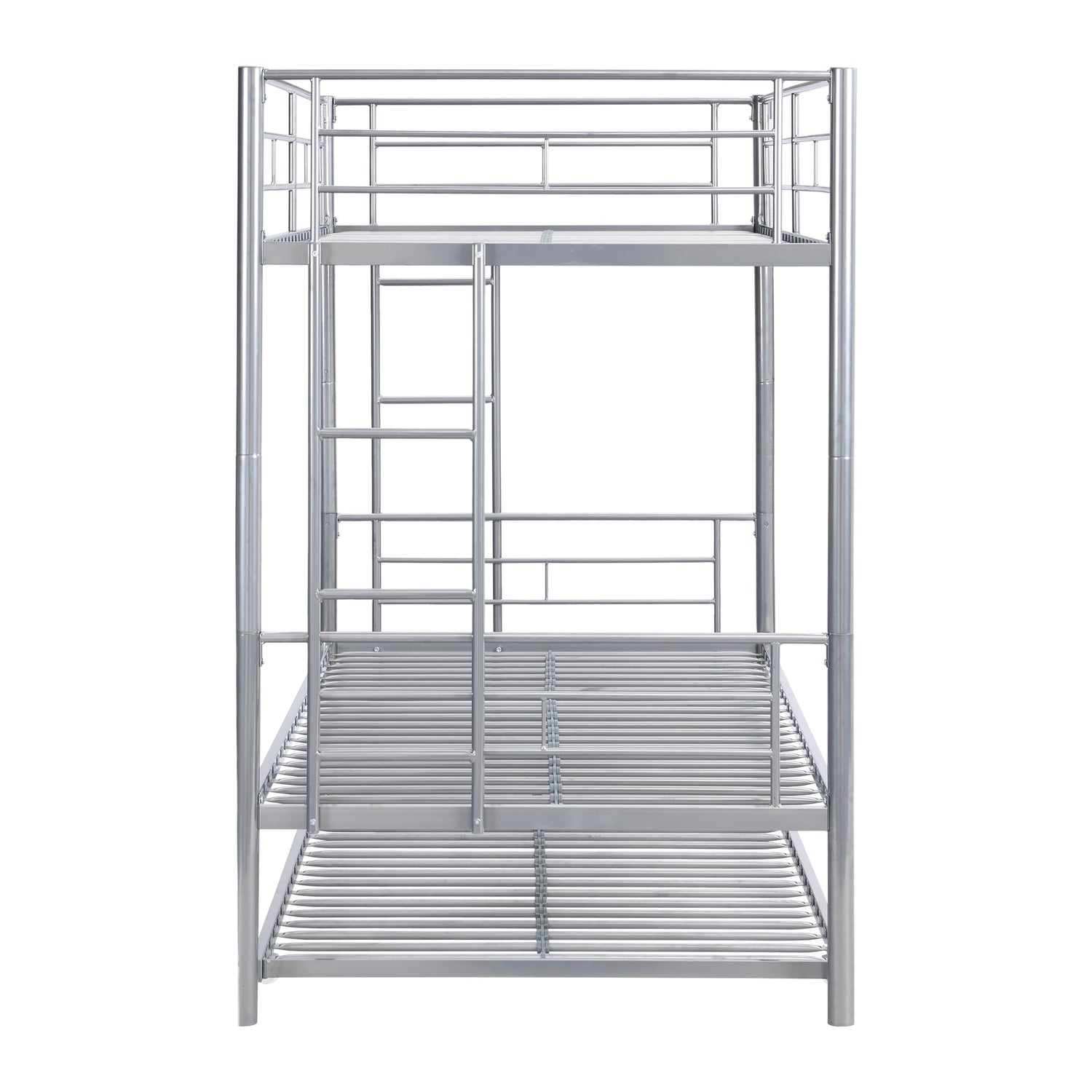 - [Modern & Space-Saving Design] This twin over twin over twin metal bunk bed combines modern style with functionality, offering a space-saving solution for any bedroom. Perfect for families with multiple kids, guests, or dormitories, it maximizes space while maintaining a cozy and stylish environment.